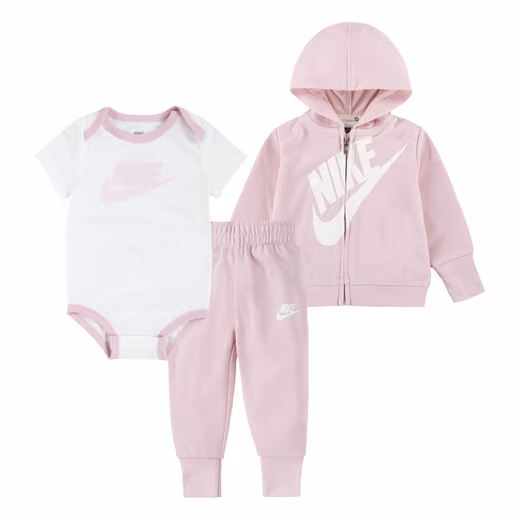 With even more motivation for the next sports session — the newborn gift set »NKN SUSTAINABLE 3PC FZ SET« by Nike Sportswear.
