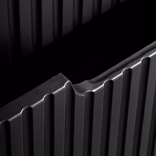 - Front: MDF (medium-density fiberboard), deep-drawn, black grooved