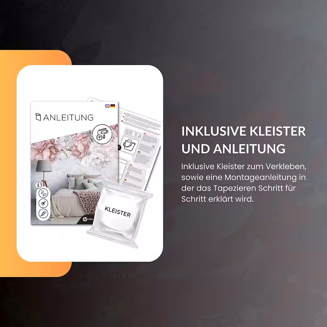 - Scope of delivery:Â Â You will receive the non-woven wallpaper, adhesive for gluing, and assembly instructions that explain the wallpapering process step by step.