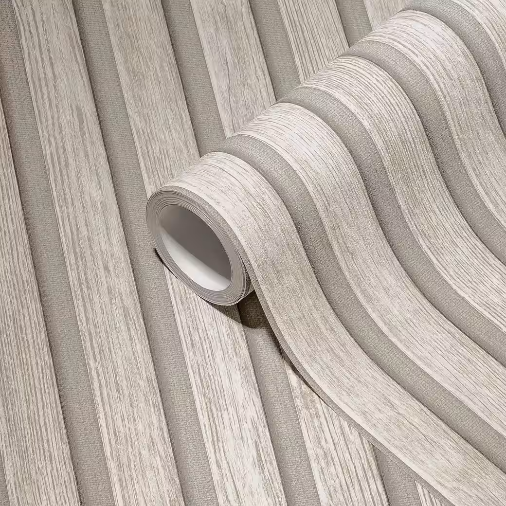 AS Création’s new wallpaper collection presents trendy acoustic panels in various Scandinavian-style colors. These decorative wood panels are highly sought after and on-trend, eliminating the need for drilling into your walls. Adorn your walls with these wooden slats in no time and create a new sense of well-being in your home. The diverse color options allow the wood panels to be integrated into a variety of interior design styles and combined with a wide range of decorations. Whether you choose the traditional, trendy Scandinavian colors in untreated light wood or dark brown wood slats, each color contrasts beautifully with the dark background of the wooden slats. If the dark background is too dark for your taste, this series also offers a lighter color option. With various light gray tones, it’s easy to create a modern, clean look. The series also boasts a deceptively realistic wood panel appearance with a 3D effect. This look makes you want to touch the wooden slats.