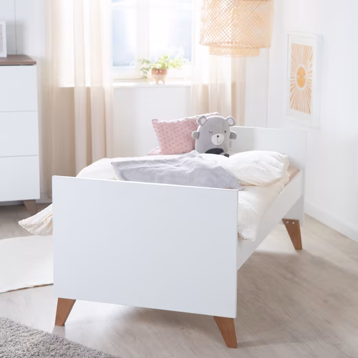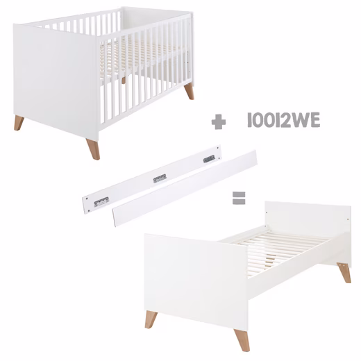- GROWING BED WITH YOUR CHILD: The baby bed offers 3 removable bars, is height-adjustable in 3 positions and can be converted into a junior bed with separately available conversion sides (item no. 10012WE).