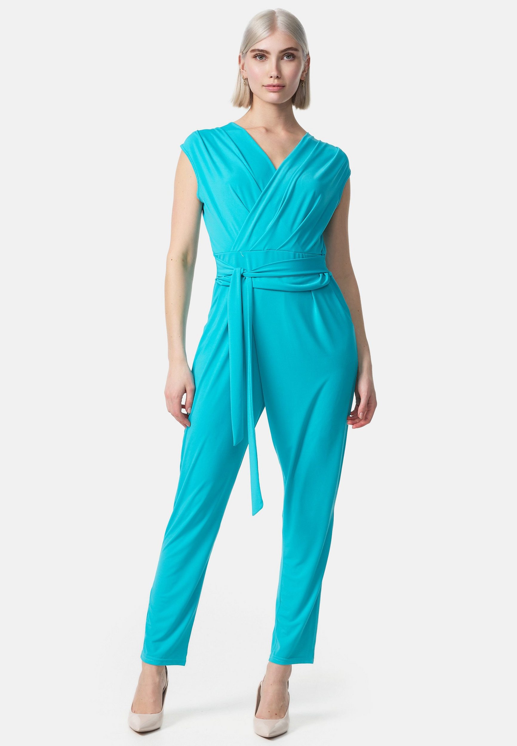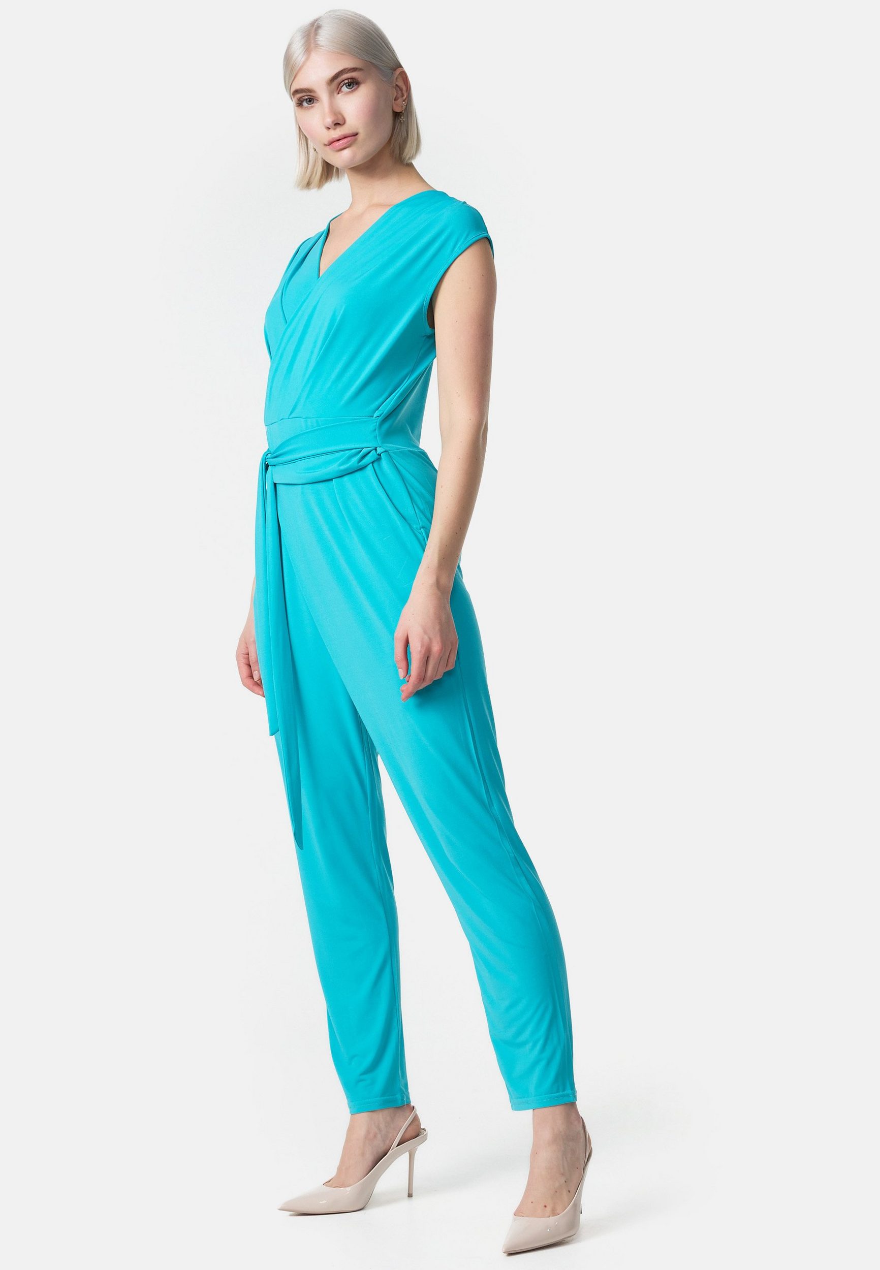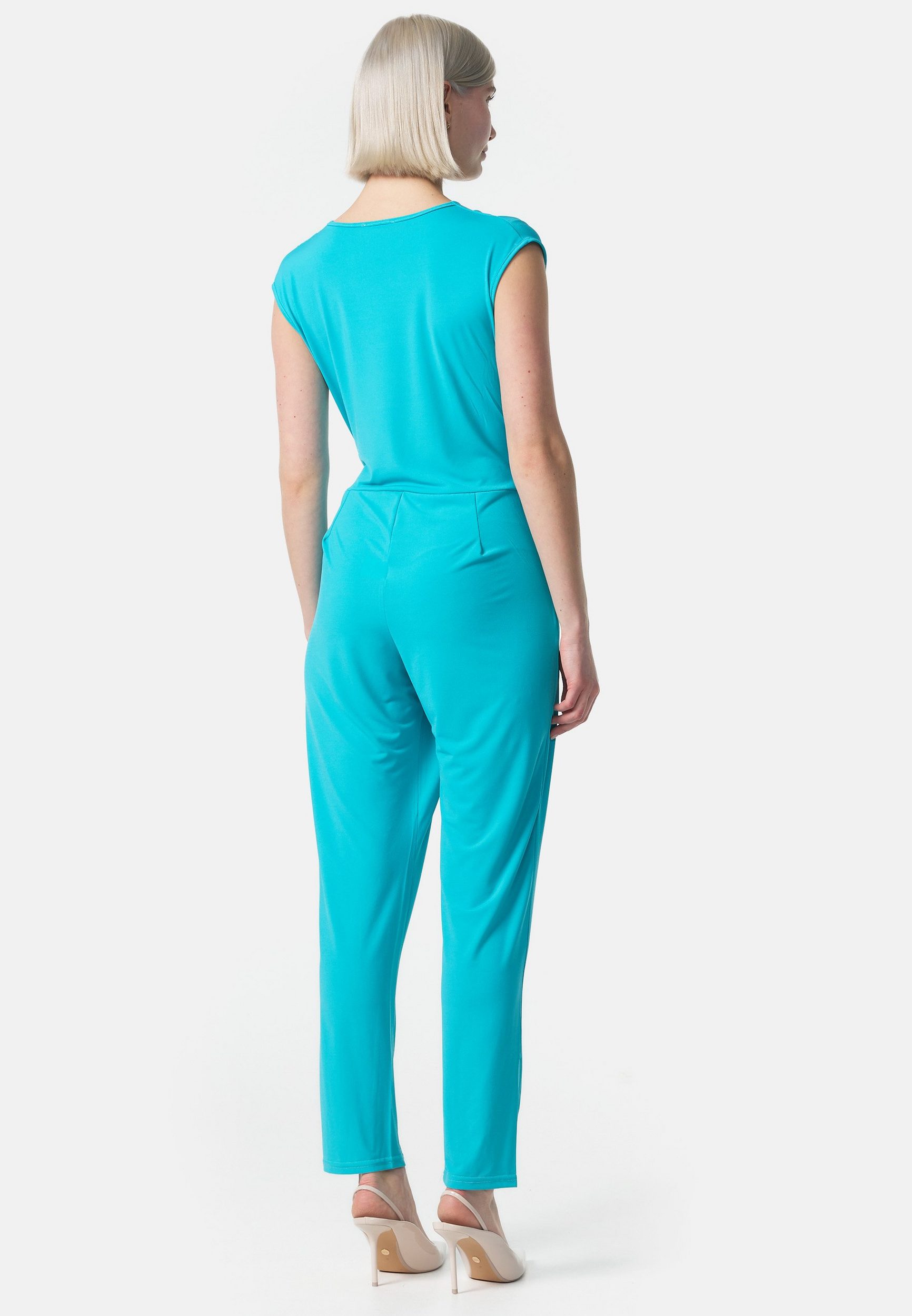 PM SELECTED Sleeveless Women’s Jumpsuit PM36 Elegant women’s jumpsuit with a V-neck and wrap look. This casual yet elegant, sleeveless pantsuit for the stylish woman is stretchy thanks to 5% elastane and adapts to the individual figure. The smooth fabric falls in soft folds and feels pleasantly cool on the skin. The high level of comfort is complemented by the tie belt, which can be adjusted to the appropriate waist size. The jumpsuit has a loose, casual cut for plenty of comfort and straight legs that reach down to the ankle. Equipped with two side pockets, the pantsuit is both elegant and practical. The back of the jumpsuit has a high cut with a round, collarless neckline. The comfortable cut makes the jumpsuit perfect for leisure time – as comfortable lounge wear at home or on vacation with style and elegance. Also suitable for parties or long strolls through the city or meeting up with friends. The classic elegance can also be worn in the workplace – especially on summer days, the lightweight pantsuit is a perfect choice for elegance without having to sacrifice comfort. PM SELECTED stands for German design with production made in Europe and, with its short working distances within the EU, makes a contribution to sustainability and CO2 consumption.