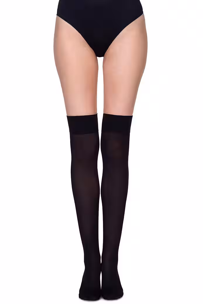 Very nice and practical microfiber overknees Lightly transparent – semi-opaque. Matt and matching any outfit. A cuff is 6 cm high, so it prevents unpleasant cutting. The toe part is invisibly reinforced. Thigh circumference up to a maximum of 45 cm Composition: 88% polyamide, 12% elastane