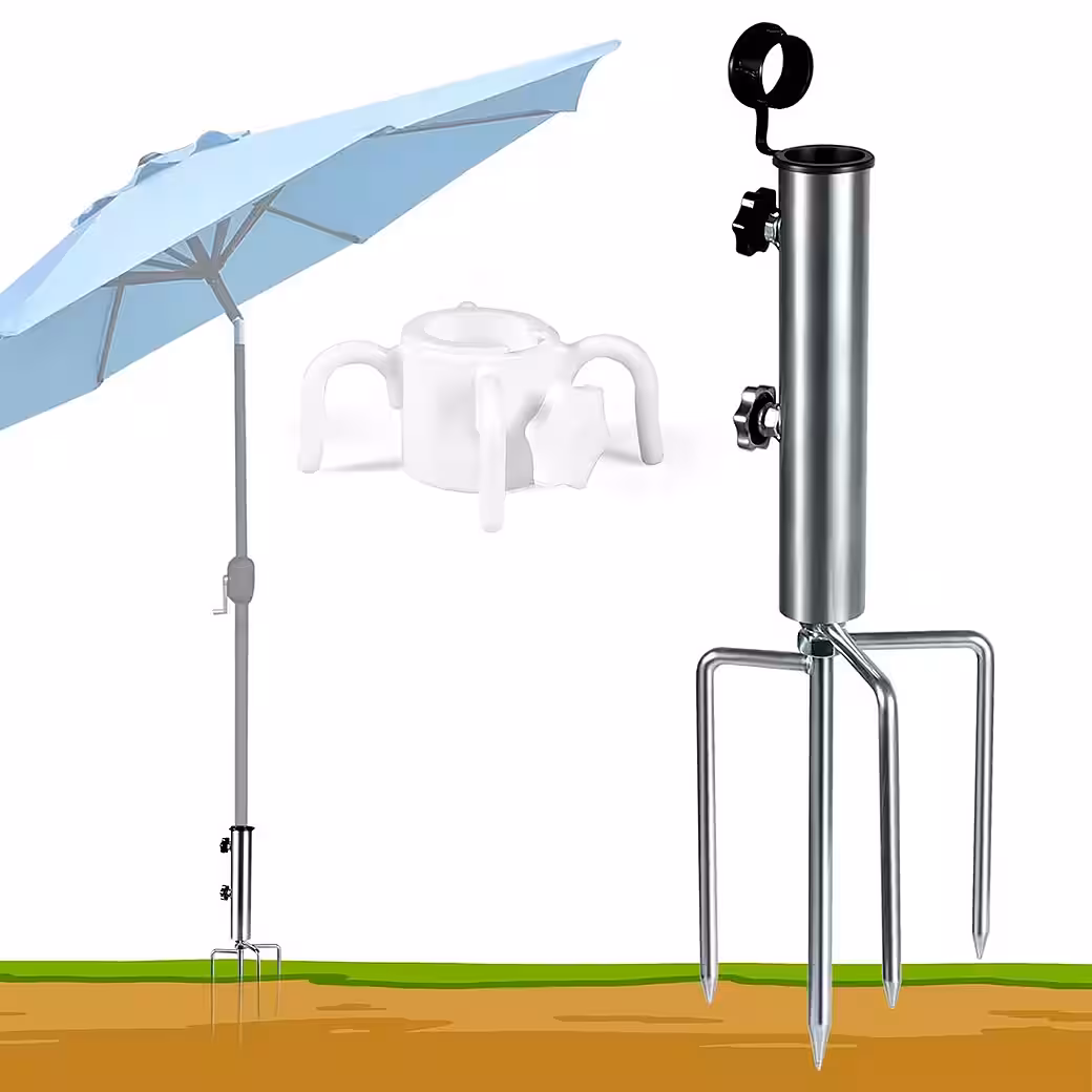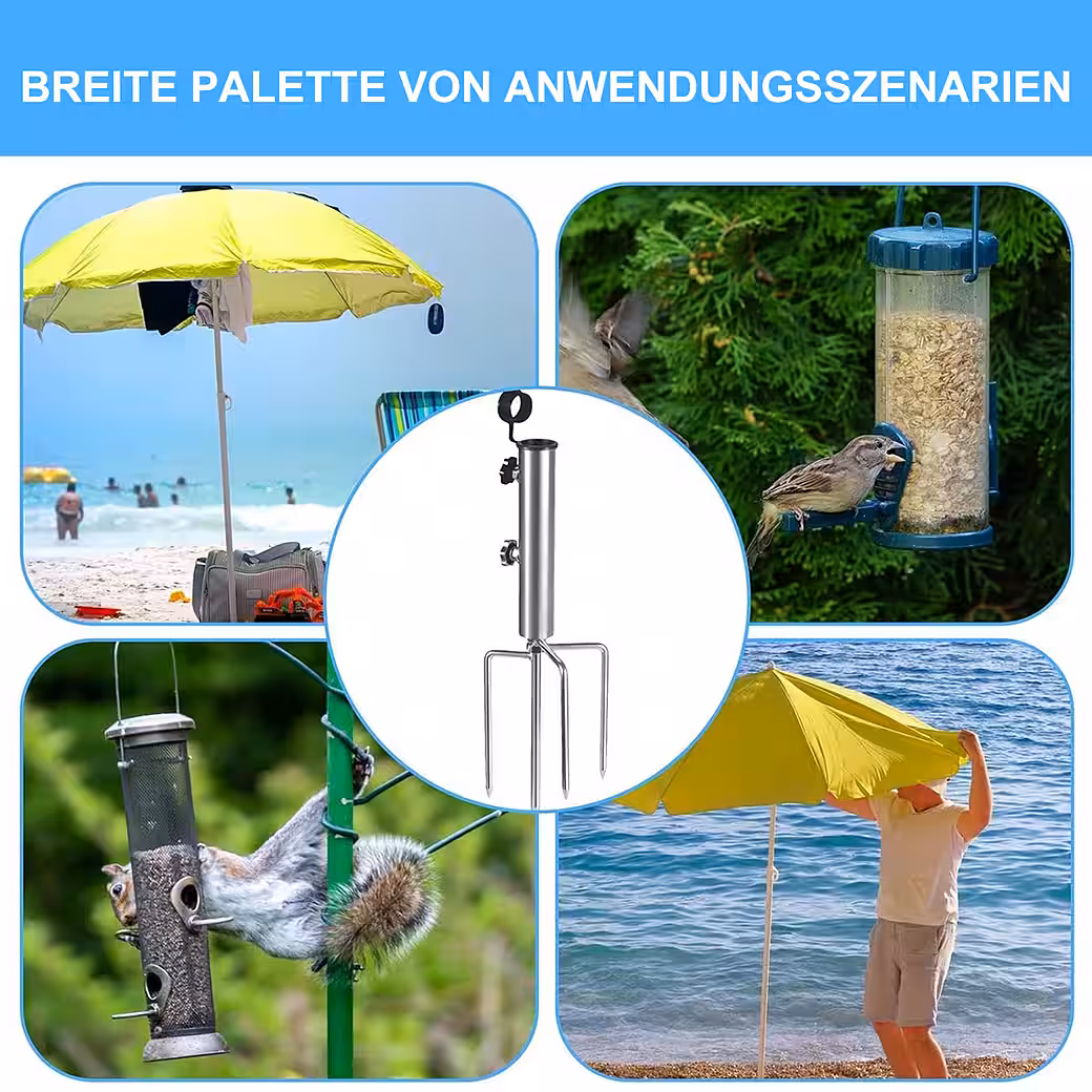 This umbrella stand is suitable for numerous applications such as beaches, lawns, and gardens. It can be used for garden umbrellas, clotheslines, birdhouses, flagpoles, fairy lights, poles, and other products that require upright support.