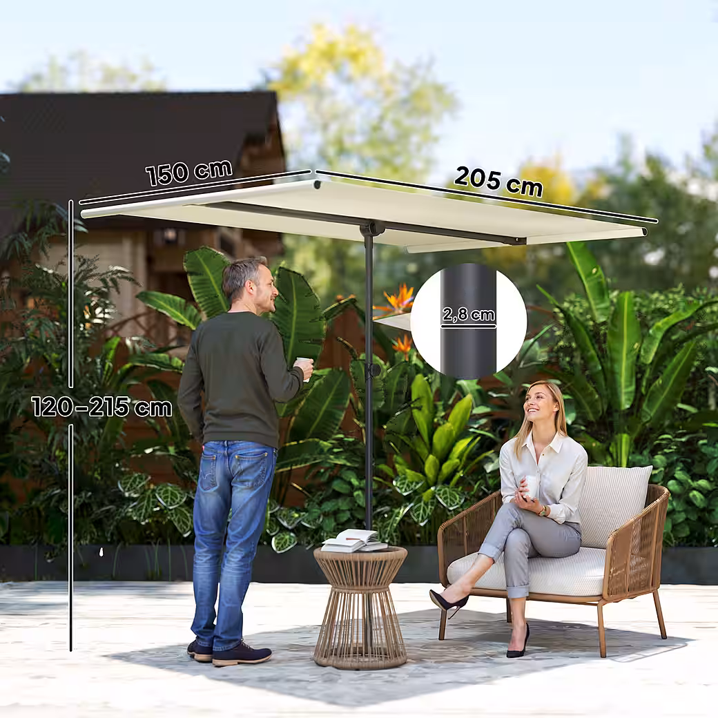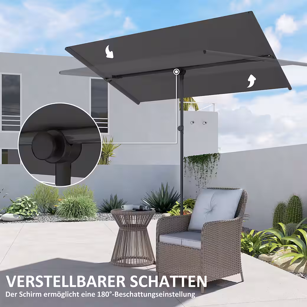Enjoy flexible shade with the Outsunny parasol, which rotates 180 degrees for optimal sun protection. Adjust the height of the parasol to perfectly suit your outdoor space. Made of polyester, the garden parasol provides excellent UV protection up to UPF 50+ and blocks 98% of UV rays, supported by a sturdy aluminum frame