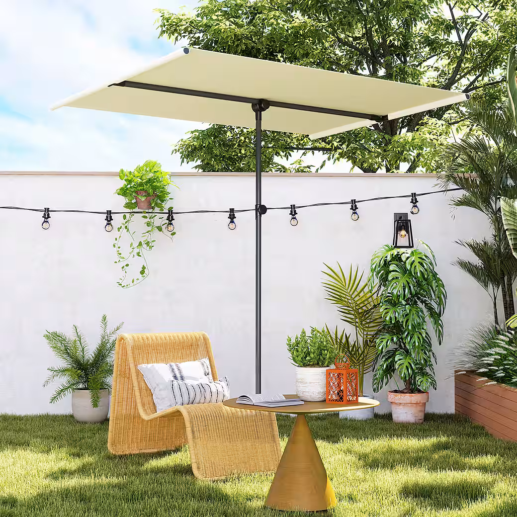 ● Height-adjustable garden umbrella offers flexibility for different spaces and needs