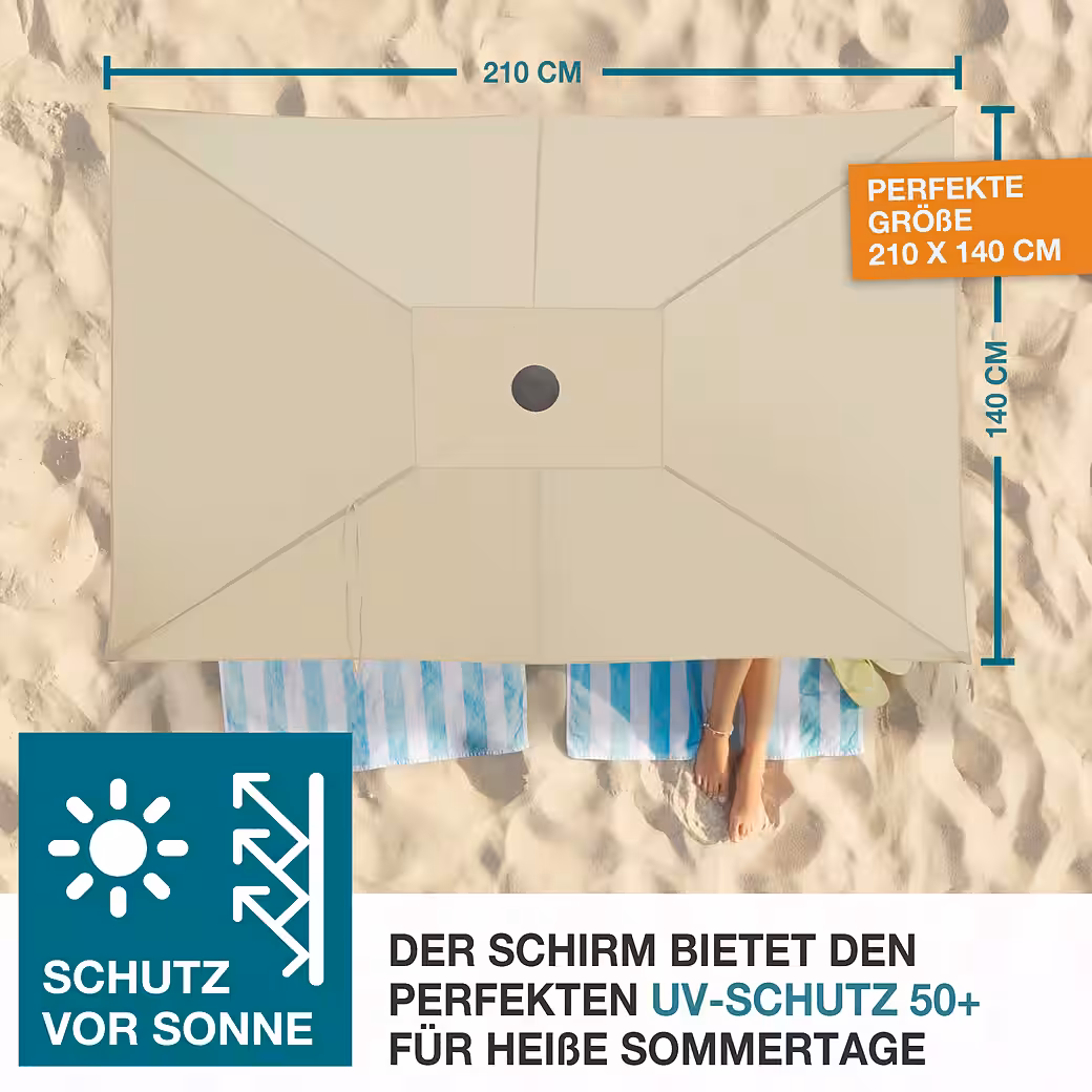 Enjoy summer with the high-quality TOM parasol , offering reliable UV protection of 50+ . Thanks to the practical crank mechanism, the parasol can be opened and closed effortlessly. The sturdy standpipe and tiltable joint ensure stability and flexible shade adjustment. Includes a protective cover and carrying bag for easy storage and transport.