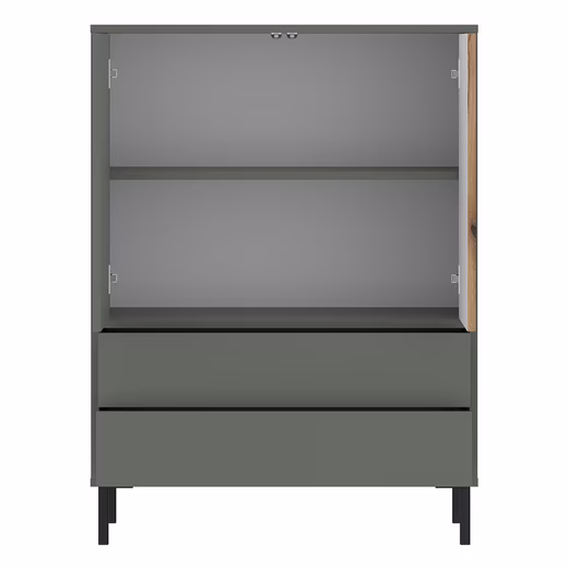 - Appealing appearance thanks to the combination of grey-green and oak finish.
