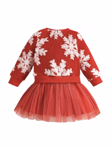 Be the first to review “Party Dress Girls Christmas Tulle Dress Long Sleeve A-Line Dress Snowflake Print (1-piece) plush midi dress knee-length, patchwork with tulle skirt, festive”