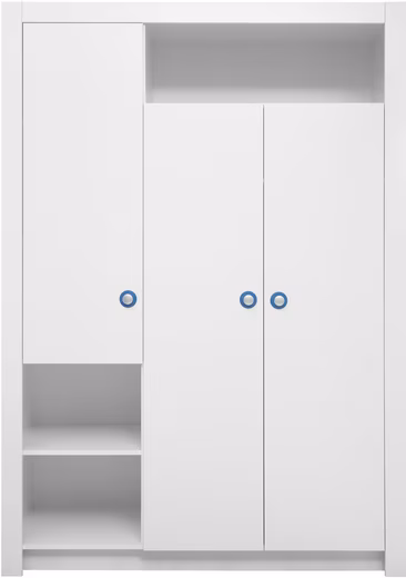 • 3-door wardrobe with 3 spacious open compartments and plenty of storage space behind the doors, matching the Paula children’s room