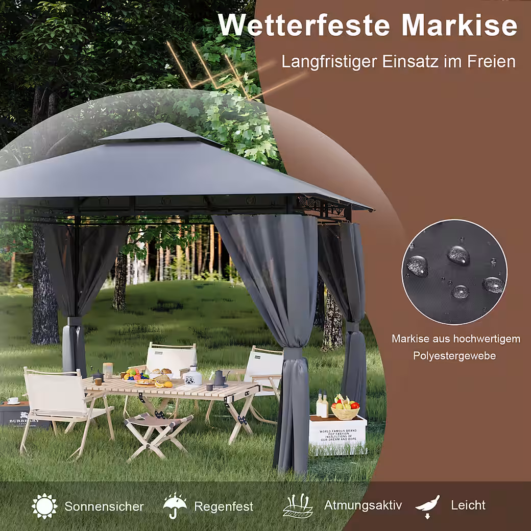 Scenario:Â The 3*3M pavilion is suitable for small family gatherings of 4 to 6 people and allows you to enjoy your leisure time with friends and family.