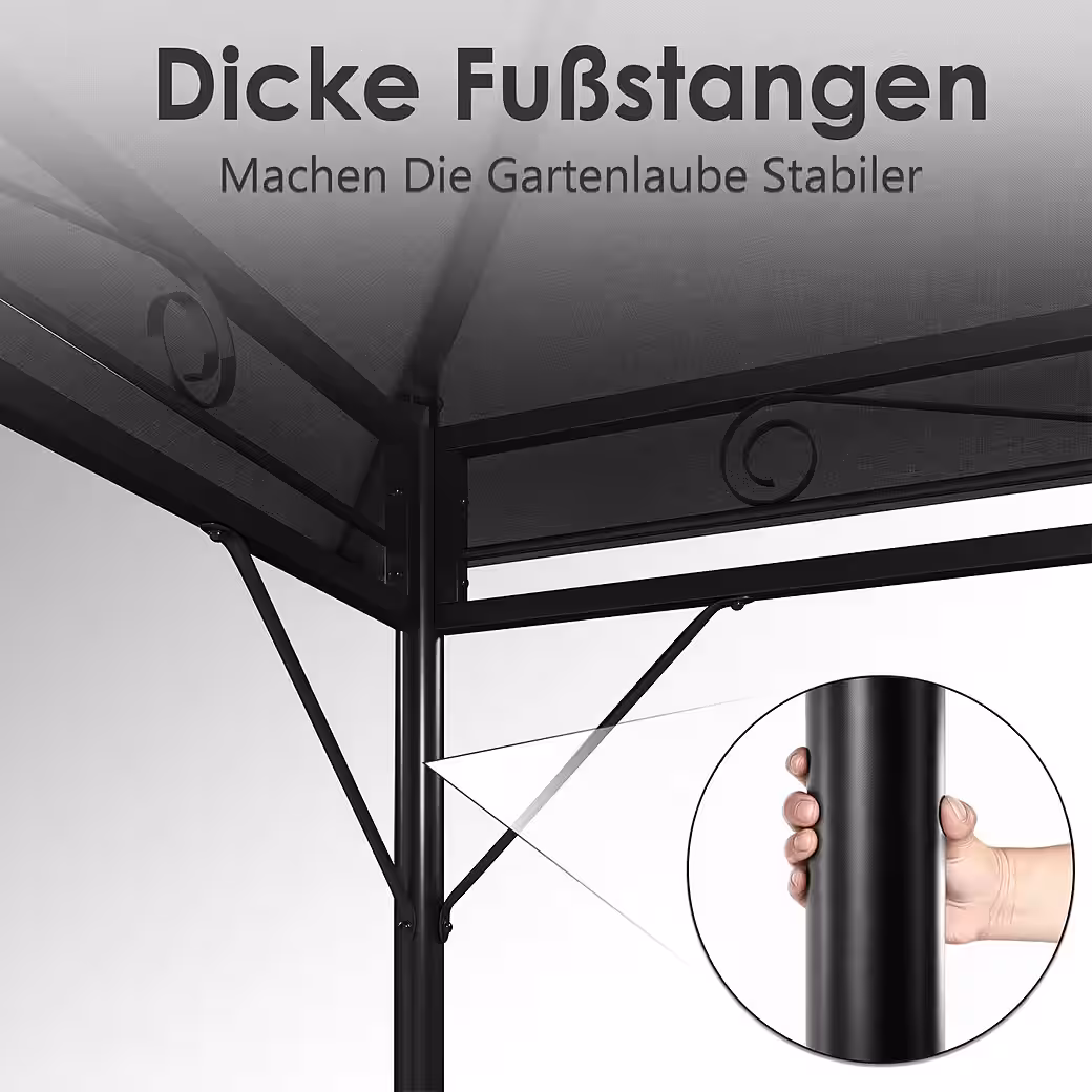 Roof design:Â The pavilion innovatively uses the principle of a double-layered roof design, and the unique air circulation mode ensures that the objects inside the pavilion are not easily blown up and moved even in gusty winds, creating a stable and comfortable place to rest for you.