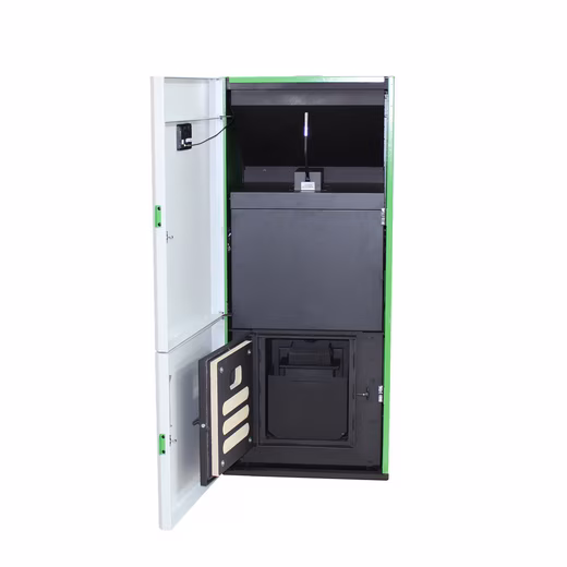 The Robin Wood EcoPellet is a next-generation pellet boiler with automatic burner cleaning. Low fuel consumption and high efficiency characterize this boiler. With an efficiency of over 94%, it achieves energy efficiency class A++. Its compact design allows for installation even in small spaces. The Robin Wood EcoPellet is designed to heat the entire house. Equipped with modern combustion control, this boiler guarantees sufficient heating comfort year-round. With a connection for a Wi-Fi module and a corresponding app, you can access the boiler at any time via your smartphone and adjust it to your needs. Furthermore, the pellet boiler can be combined with other heat generators. It also features automatic burner cleaning. Would you like to supplement your home heating with solar energy or a heat pump? With a multi-buffer system, you can utilize virtually any energy source. The Robin Wood EcoPellet offers flexibility, allowing you to upgrade your heating system to suit your specific requirements. Eligible for BAFA funding in Germany â–¸ see bafa.de â–¸ We are happy to assist you with completing the BAFA application. Technical details: â–¸ Nominal output: 18 kW â–¸ Height H: 1545 mm â–¸ Width B: 566 mm â–¸ Depth D: 787 mm â–¸ Pellet tank capacity: 105 kg â–¸ Fresh air connection: Ø 48 mm â–¸ Flue pipe: Ø 80 mm â–¸ Weight: 220 kg â–¸ Fuel type: Ø6-Ø8 mm wood pellets â–¸ Chimney draft: 12 Pa â–¸ Power consumption: 60/310 W â–¸ Power supply: 230/50 V/Hz â–¸ Water jacket capacity: 30 liters â–¸ Operating pressure: 0.5-2.0 bar â–¸ Maximum operating ambient temperature 5-40°C â–¸ Humidity at 30°C â–¸ Ambient temperature: 85% â–¸ Efficiency >95% â–¸ CO emissions: <300 mg/m³ â–¸ Flue gas temperature: 125°C â–¸ Max. water temperature: 90°C Exhaust gas mass flow at: â–¸ Nominal output: 12.99 g/s â–¸ Reduced output: 3.75 g/s â–¸ Flue gas temperature: 125°C Eligible for BAFA funding in Germany. More information about the boiler here. Manufacturer’s details: ROBIN WOOD GmbH Überaucher Straße 9 D-78052 Villingen-Schwenningen Tel.: +49 7705 9769692 E-mail: info@robinwood-gmbh.de Website: www.robinwood-gmbh.de