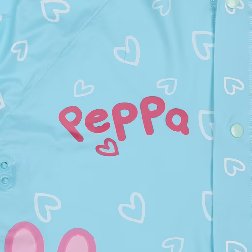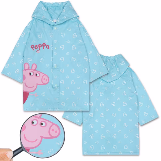 A cute turquoise raincoat for children with a Peppa Pig motif.
