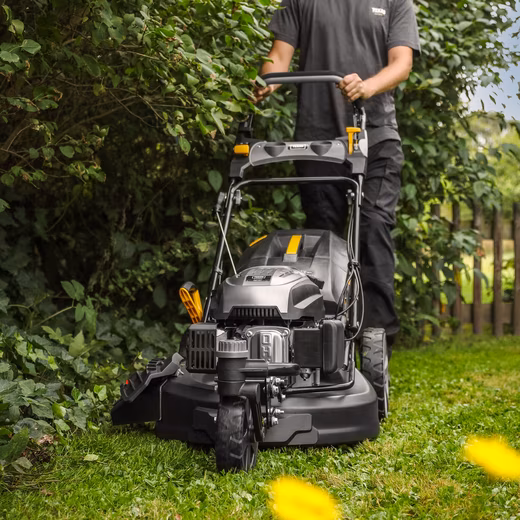 The ZT 514TR/W is a 3-wheeled zero-turn lawnmower that offers optimal maneuverability, a choice of 4 different driving speeds, and plenty of power for mowing your lawn. Easily navigate around corners and obstacles with the swiveling front wheel. This user-friendly, self-propelled lawnmower makes even large lawns a breeze. TEXAS’ ZT series is the latest generation of zero-turn lawnmowers with swiveling front wheels. These mowers always feature powerful engines. The ZT 514TR/W is equipped with the most powerful TEXAS TG670V 196cc engine, providing you with tremendous power. This lawnmower has 4 speeds, allowing you to operate at four different speeds without compromising on the number of blade rotations. With its 3 wheels, this lawnmower is incredibly easy to maneuver. You can turn on the spot and easily maneuver around obstacles on the lawn, but the ZT 514TR/W’s swiveling front wheel can also be locked for more stable straight-line driving. The extra-large rear wheels of the ZT 514TR/W make the lawnmower even more stable while driving and maneuvering, and since the rear wheels are also driven, it’s very easy to move around the lawn and maneuver around corners and edges. The cutting deck is made of steel, which is extremely durable and resistant to stone chips. The ZT 514TR/W has a 4-in-1 function, giving you all the options for mowing your lawn. With rear or side discharge, the lawnmower throws the grass behind you or to the right; with the mulching function, the grass is finely cut and remains on the lawn as natural fertilizer; and with a grass catcher, you can achieve a beautifully smooth lawn without any clippings. The included large 65-liter grass catcher effectively collects the grass, allowing you to mow for extended periods before it fills up. A handy indicator on the catcher shows when it’s full. The central height adjustment makes it easy to set the cutting height using the large handle on the rear wheel, offering six settings from 30 to 80 mm. The ZT 514TR/W boasts a generous 51 cm cutting width, ensuring you mow a wide area of ​​the lawn with each pass, enabling it to handle lawns up to 600 m². The ZT 514TR/W’s handlebar is ergonomically designed and height-adjustable, allowing you to find the most comfortable working position. The foam grip also provides a pleasant hold. It is started with the pull cord while you hold down the start lever – activate the other lever, and the self-propulsion system also starts and assists you in moving forward. The speed selector is located on the handlebars.This allows you to adjust the lawnmower’s speed to your pace. On the opposite side of the handlebar is the choke, which helps you start the machine. As a small luxury, there’s even a cup holder, so you can take a refreshing drink with you while mowing. The ZT 514TR/W also comes with ball bearings in all wheels, ensuring smoother operation. Cleaning is also very easy thanks to the built-in wash port on the ZT 514TR/W; simply connect the garden hose and start the engine. The blade then ensures that grass clippings are washed away from under the cutting deck. With the ZT 514TR/W, you get an extremely maneuverable petrol lawnmower that offers plenty of power for even large lawns. It features self-propulsion, four speed settings, numerous cutting options, excellent features, and greater maneuverability than any other lawnmower, making mowing even easier and more enjoyable.