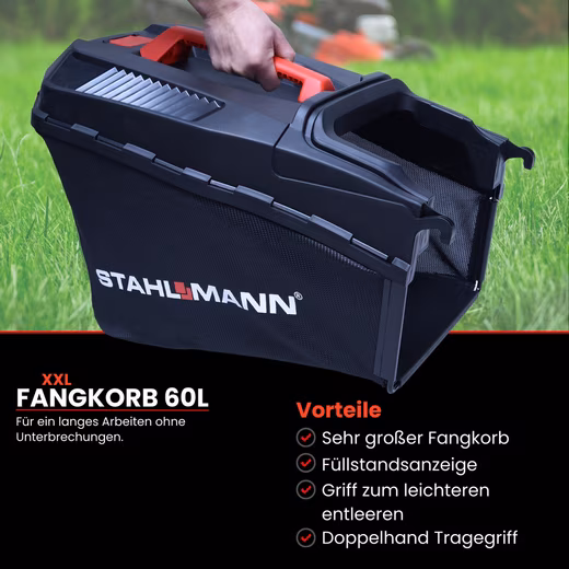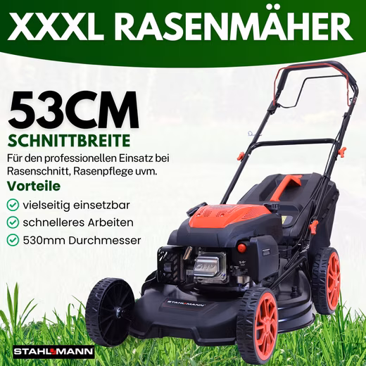 Max. 7.0 HP ENGINE – POWERFUL & RELIABLE: The Stahlmann lawnmower has a powerful and reliable engine with a continuous rated output of 5.7 HP (4.2 kW) and a maximum output of 7.0 HP (5.1 kW). This makes mowing even tall and wet grass a breeze.