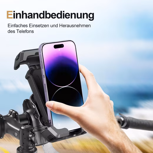 Experience a new level of riding comfort: Our universal phone mount offers maximum safety, flexibility and stability with double shock absorption, 360° rotation and tool-free installation – perfect for any adventure on two wheels.