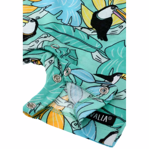 With its short sleeves and short legs as well as the breathable fabric, this chic romper is ideal for warm days. In addition, there is the print with cute toucans – on your marks, get set, adventure!