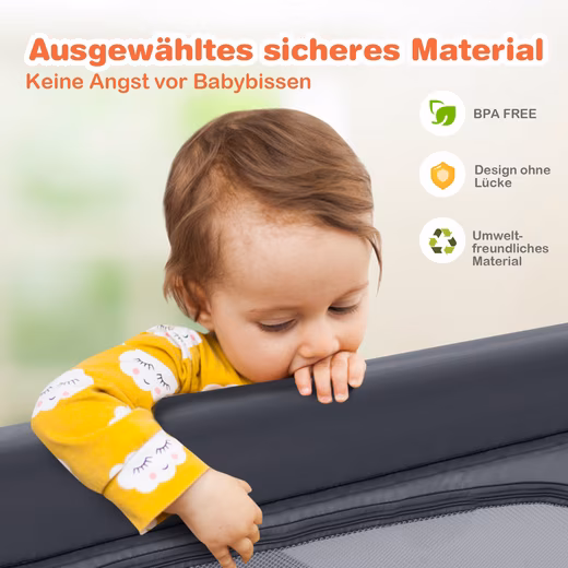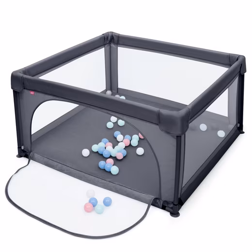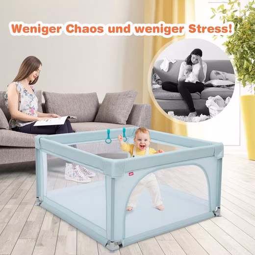 It has been thoughtfully designed and is very durable and wear-resistant due to the Oxford fabric. Due to the firm structure, it is very stable and does not tip over. Parents always have their children in view through the transparent mesh fabric and can interact with them at any time. The playpen is therefore a relief for parents and a great playground for children!