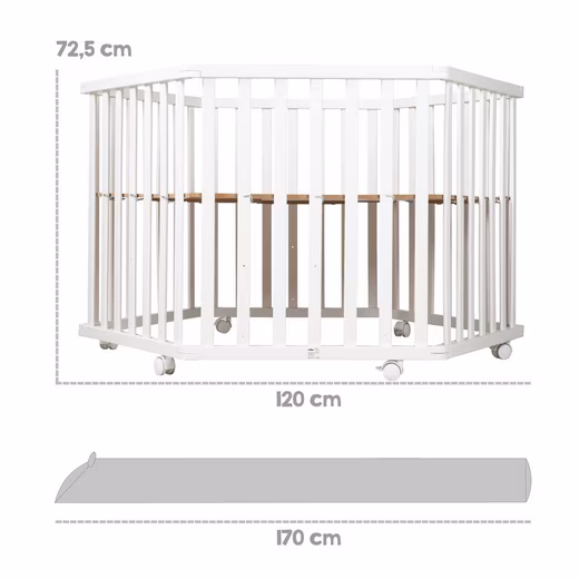 The ‘roba Style’ bundle consists of a 6-sided playpen with grey fabric inlay and a silver-grey bed snake with a bear face made of microfibre. The 6-sided roba playpen ‘roba Style’ in the colour white offers a child-friendly and stable play and cuddle surface with a softly padded, quilted grey fabric insert for all-round protection from birth. The textile fabric of the interlining is removable, made of easy-care and quilted microfiber, which is washable at 40° C. The roba playpen is baby-friendly and splinter-free. The upper position of the 3-way height-adjustable playpen floor proves to be particularly back-friendly for you as parents. Six brake rollers provide the necessary mobility and stability for this playpen. All materials used in the crawling grid are tested for harmful substances and certified. The playpen has been developed in accordance with the EN 12227:2010 standard. Dimensions of construction: 72 x 119 x 103 cm (HxWxD) Loadable up to a weight of 15 kg. Color: White. The ‘roba style’ baby bed snake with the cute bear face ‘Sammy’ protects the head of your infant from draughts or the hard bars of the baby bed. Placed between the parents’ bed and the co-sleeper, the bed snake closes a possible gap. The softly padded roba bed frame provides a cosy feeling of security and also looks pretty. The bed snake is suitable later in the baby or children’s bed as protection from cold walls, as a side sleeper pillow or simply for cuddling. The bed frame also cuts a fine figure as a decorative element and can alternatively be converted into a draught stopper for doors or windows. The roba bed snake is washable at 40° C. All materials used in the ‘roba Style’ bed bumper are tested for harmful substances, certified and are regularly tested. (LxW): approx. 170 x 12 cm. Colour: silver-grey
