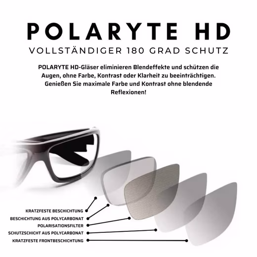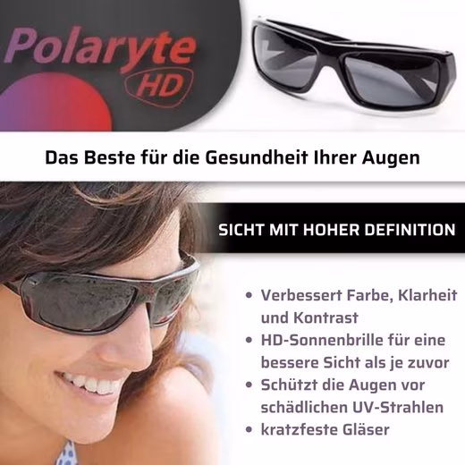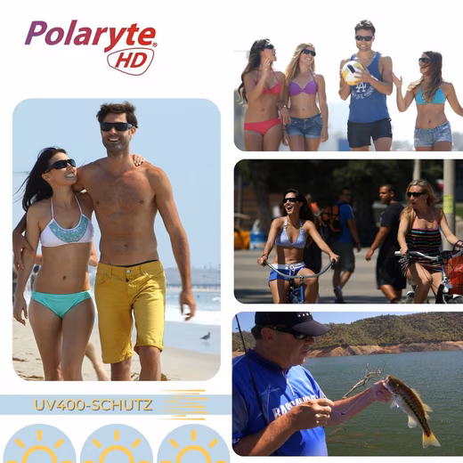 Say goodbye to the constant glare from the sun! Polaryte® HD sunglasses offer you optimal protection and clear vision in bright light. The innovative polarization filter blocks reflected light from your eyes, drastically reducing annoying glare from the sun’s reflections. Conventional sunglasses can make your surroundings appear darker without solving the problem of glare. But with Polaryte® HD sunglasses, you’ll experience a completely new visual experience. They provide richer, brighter blues, more saturated greens, and more vibrant yellows without sacrificing clarity and contrast.