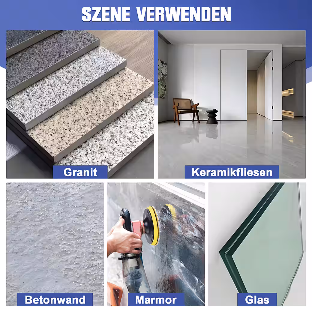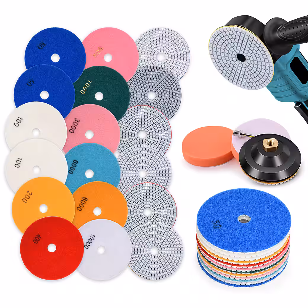 Polishing of granite, marble, tiles, concrete, glass, artificial stone and other materials can be done with various machines such as angle grinders, wet grinders, drills, grinding machines and coarse grinders