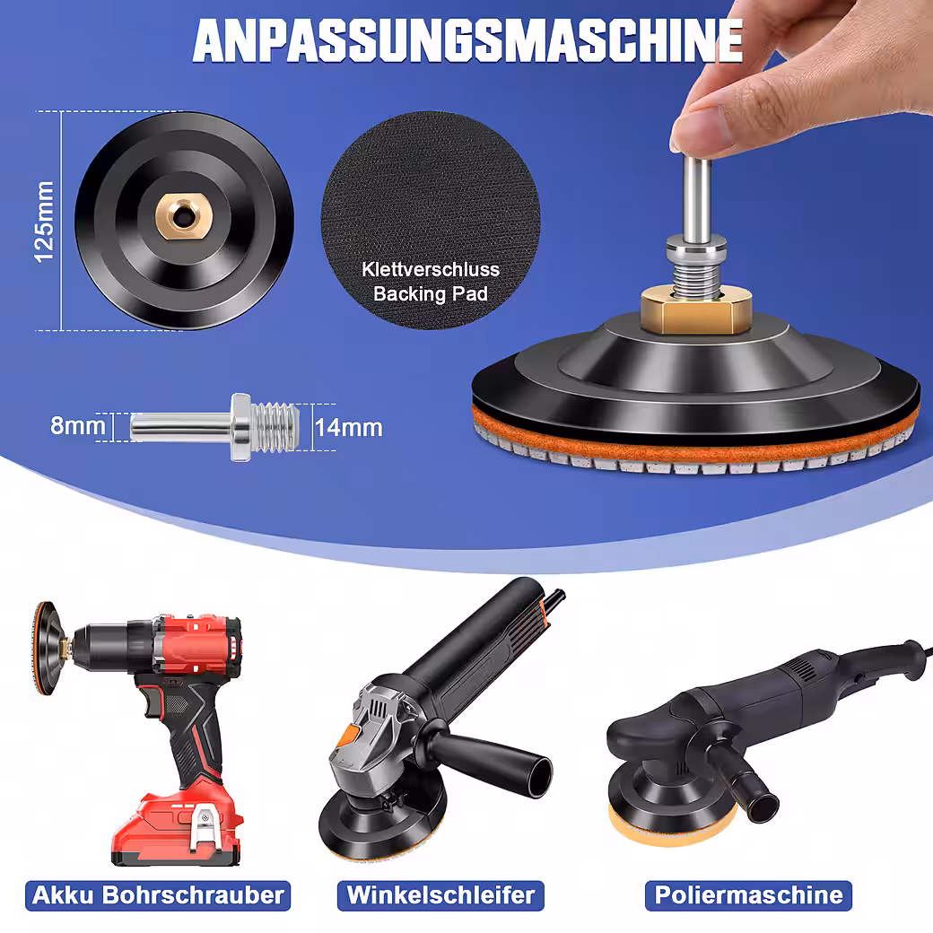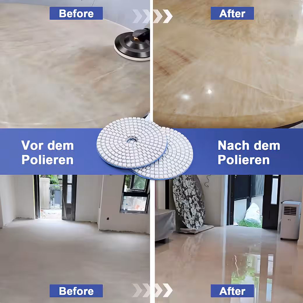 Our polishing discs are made of high-quality diamond powder and resin, resulting in strong grinding performance, even polishing, durability and a smooth texture.Optimal combination:
