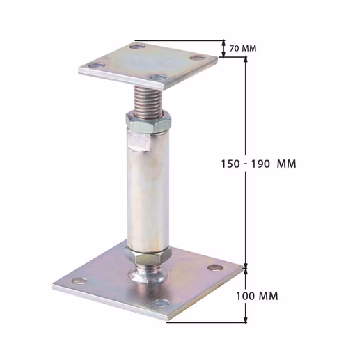 Post support I-post support, height adjustable, height: 30-150 mm, 70 x 70 mm, post For wooden structures in outdoor areas, for screwing on, (1 pc)