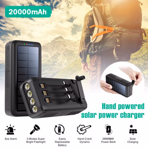 â–º2-in-1 Hand-Cranked Solar Power Bank: