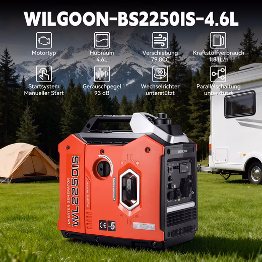 BS2250IS solar generator, 4-stroke gasoline power generator, 2000W quiet generator power generator for off-grid living, home use, camping, motorhome.