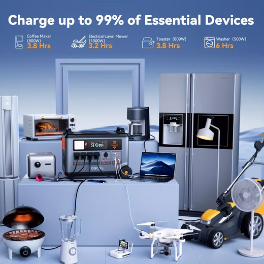 AC + Solar Charger: The ideal combination of mains power and solar energy allows you to fully charge in just 1.2 hours with a maximum input power of 2400W.