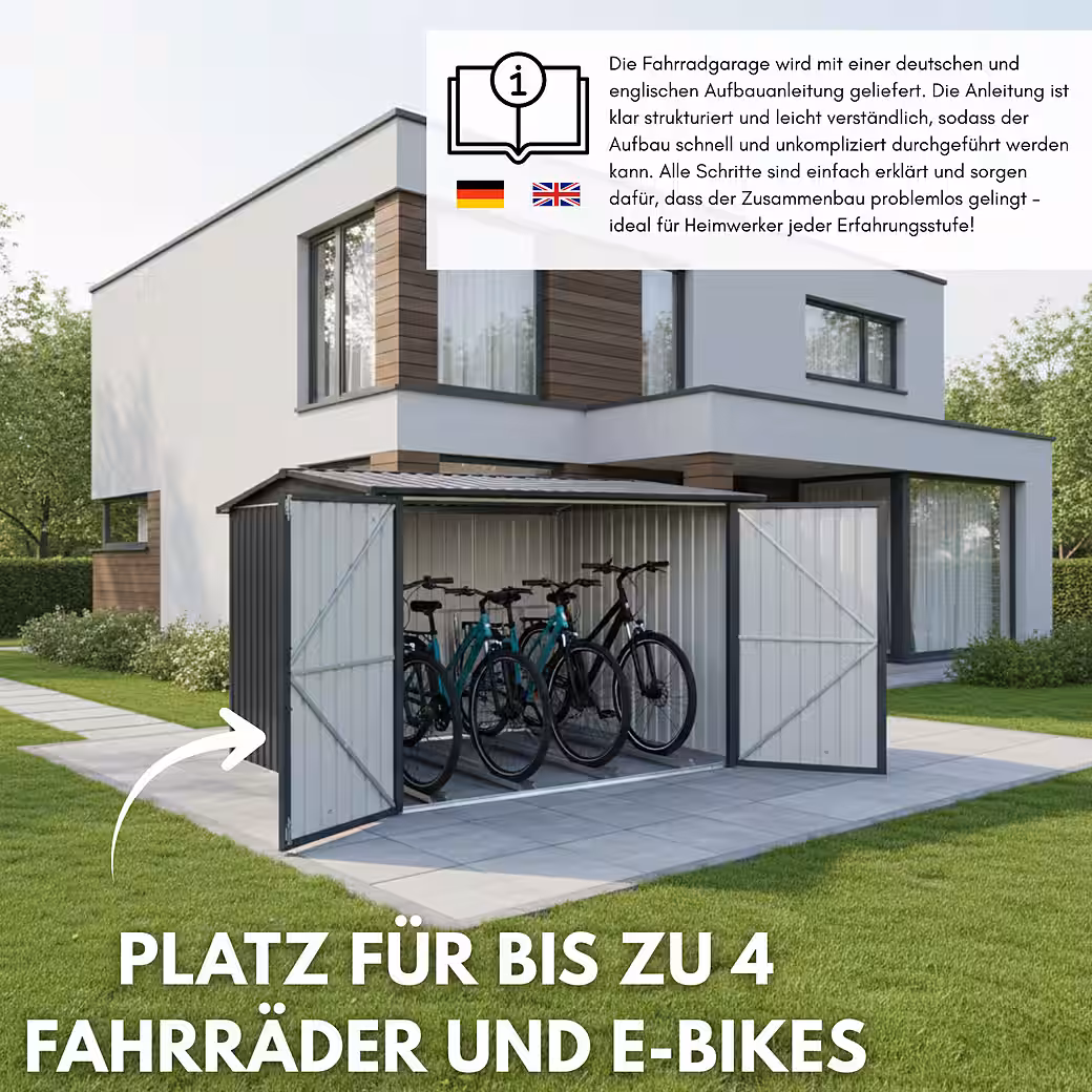 - AMPLE STORAGE AND SPACE: The Albatros bicycle garage offers the perfect size for up to 4 bicycles. Ideal for a small family.