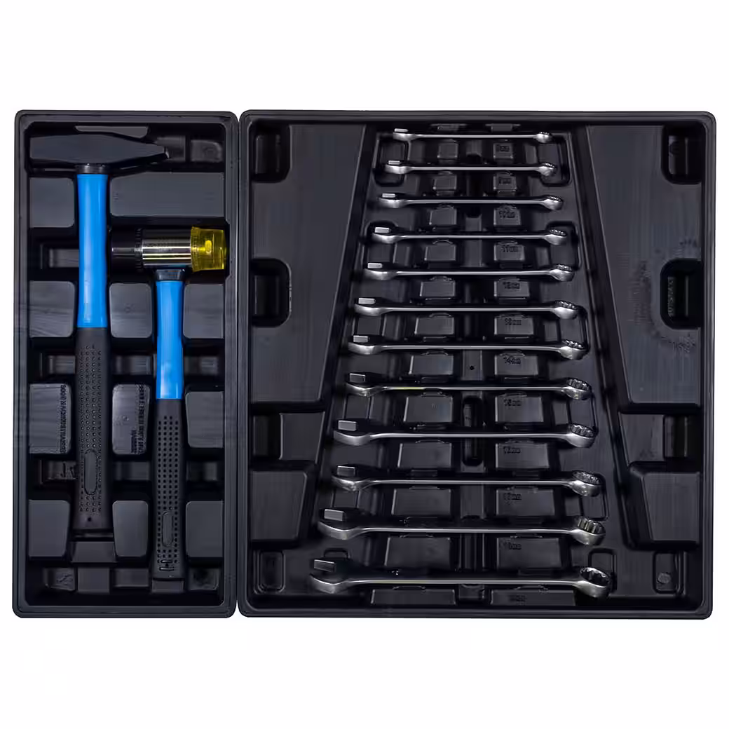 - 26 socket wrench inserts: 1/2″ 10, 12-22, 24 mm | 1/4″ 4, 4.5, 5, 5.5, 6-14 mm