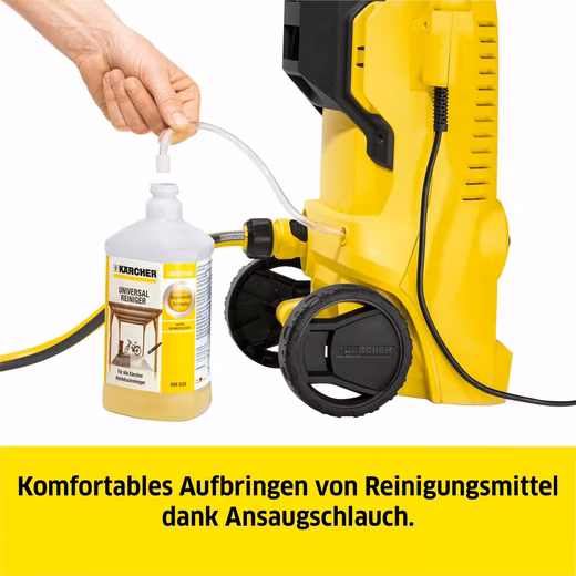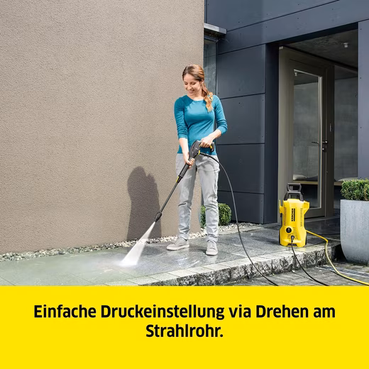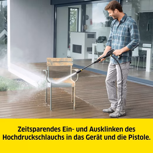 The Kärcher Home & Garden app turns every user into a cleaning expert – and enables an even more thorough cleaning result with the Kärcher K 2 Power Control high-pressure cleaner. The app contains the helpful application advisor that supports the user with practical tips and tricks for every cleaning task. In addition, the app offers an all-round service including information about the device, the application and the Kärcher service portal. The K 2 Power Control Home including Home Kit with the surface cleaner T 1 and the 500 ml cleaning agent “Patio & Deck” for splash-free cleaning of larger areas. The device is equipped with a high-pressure gun and 2 spray lances with Quick Connect connection. The pressure level can be adjusted directly on the Click Vario Power spray lance – for maximum control during every cleaning task. In addition, the device has a height-adjustable telescopic handle for convenient pulling and stowing, a suction hose for effortless application of cleaning agents, practical holders for accessories, high-pressure gun and cable as well as a 5-meter hose.