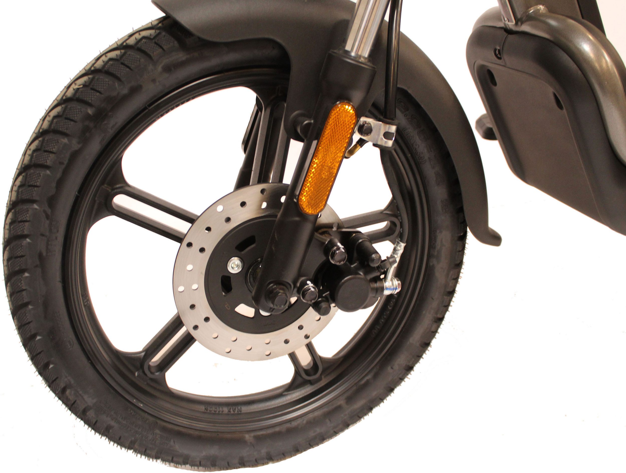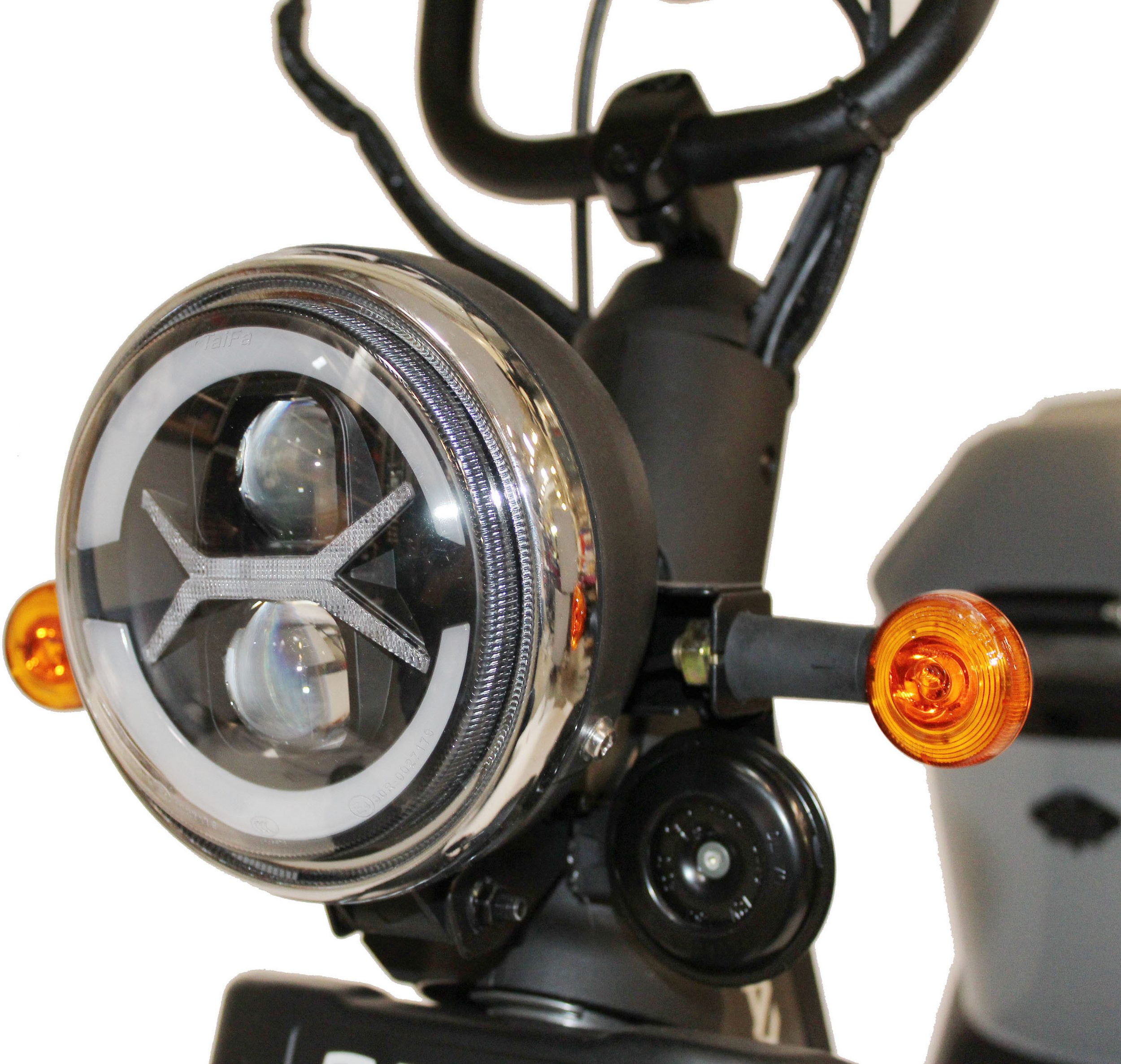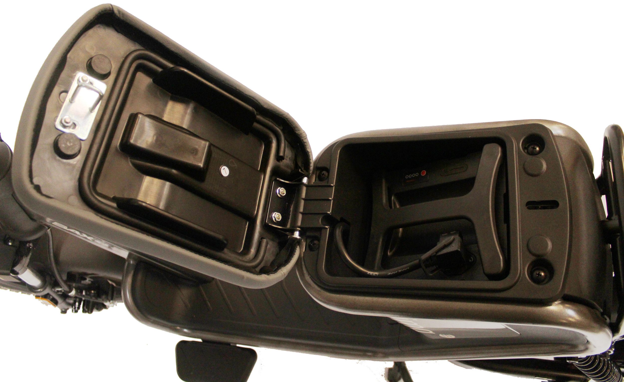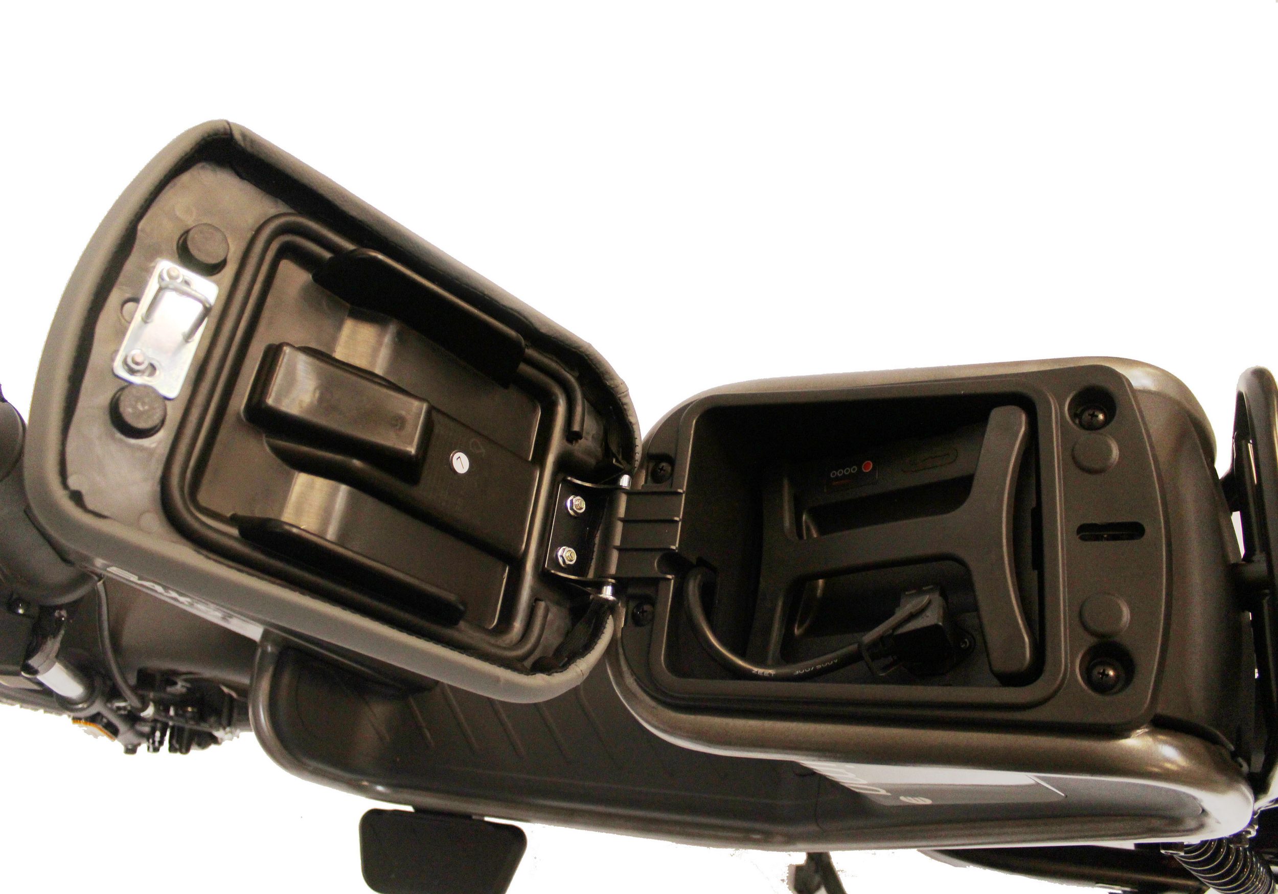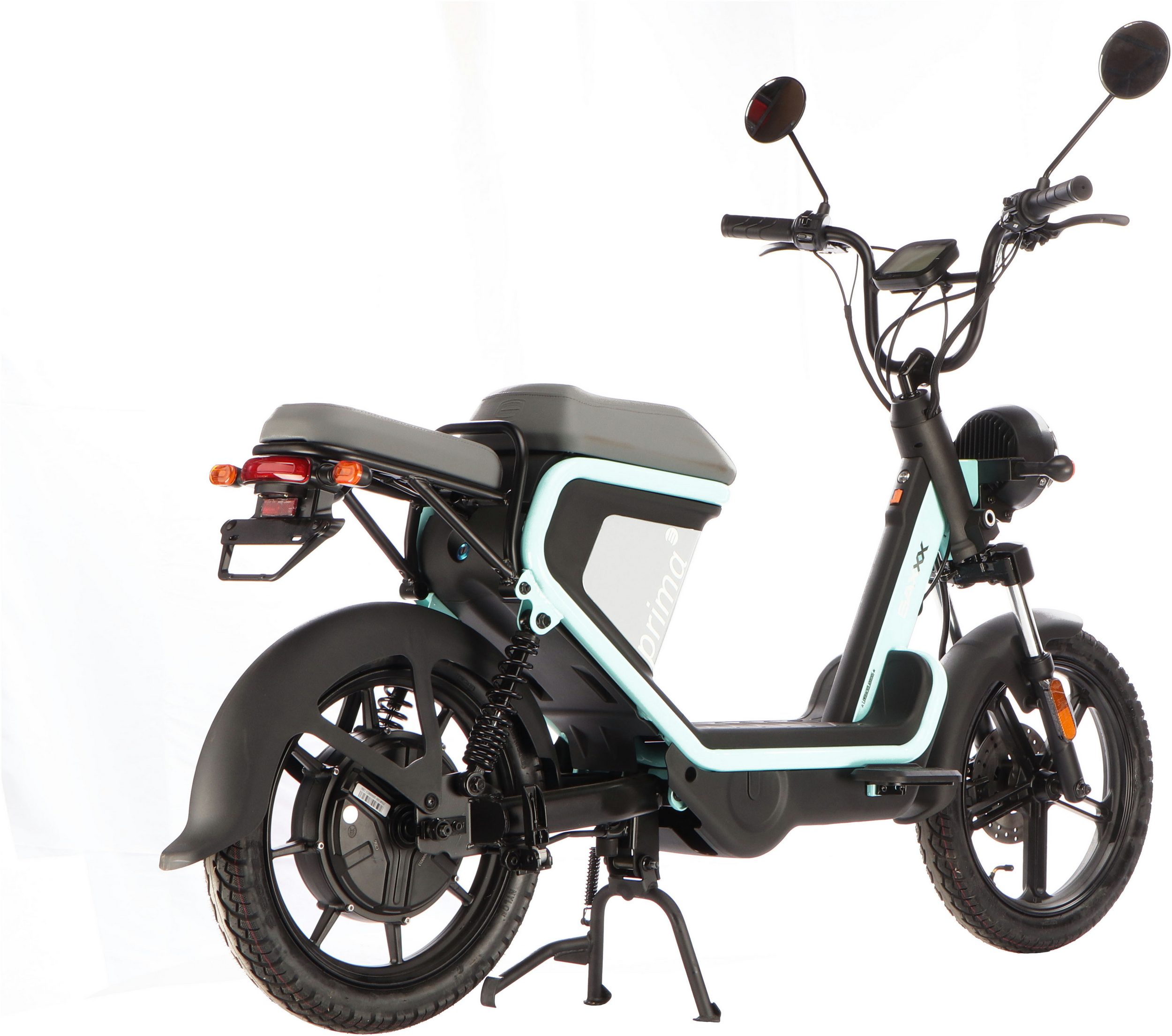 The SAXXX Prima E is our stylish entry-level model into the world of e-mobility! With its futuristic, sleek design and surprisingly powerful motor, you’ll be perfectly positioned for the future! The Prima E is a real head-turner on the road. If you like a splash of color, you’ve come to the right place. This model is available in three different color options that are sure to impress. With its powerful 48V rear-wheel motor and 20 Ah battery, the Prima E is the perfect companion for your trips around town. It’s also a space-saving companion for your camping holidays. The SAXXX Prima E is easy to store and perfect for any type of vehicle, whether it’s a caravan, campervan, van, or motorhome. The Prima E is always ready to go. The 25 km/h moped has a range of up to 70 km – and the 45 km/h light motorcycle has a range of up to 45 km. Charging takes approximately 3-4 hours. This means short charging times and even longer riding fun for you. Weighing just 57 kg, it’s the perfect entry-level model into the world of e-scooters. Its low weight makes it incredibly easy to ride and steer. The e-scooter’s power delivery is unbeatable.