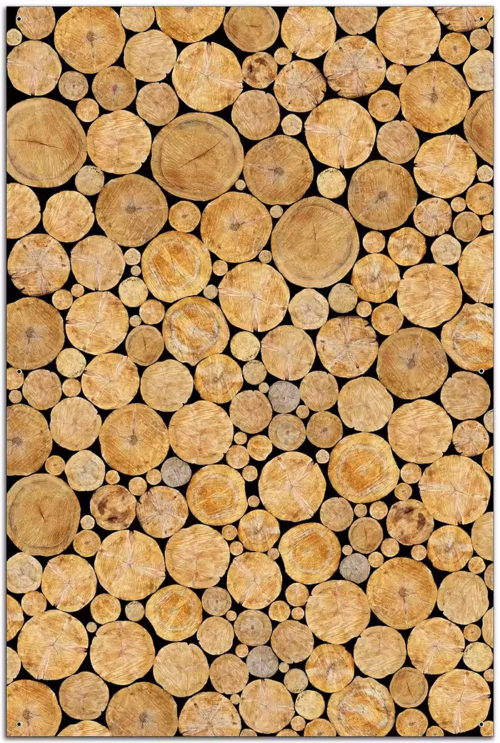 This image shows logs of varying sizes, cleanly sawn and stacked into a firewood pile to dry. Bring this rustic, cozy atmosphere into your home!