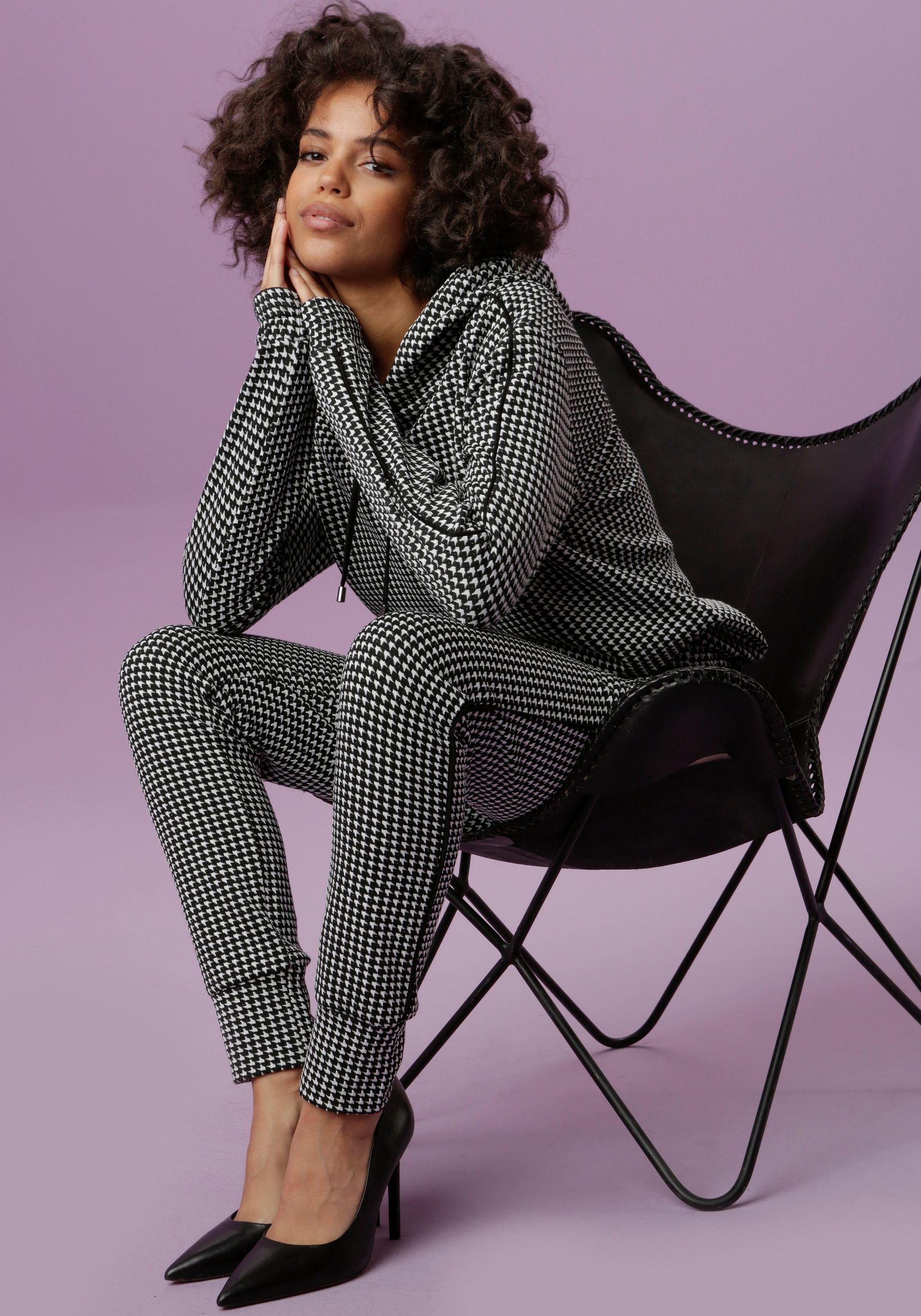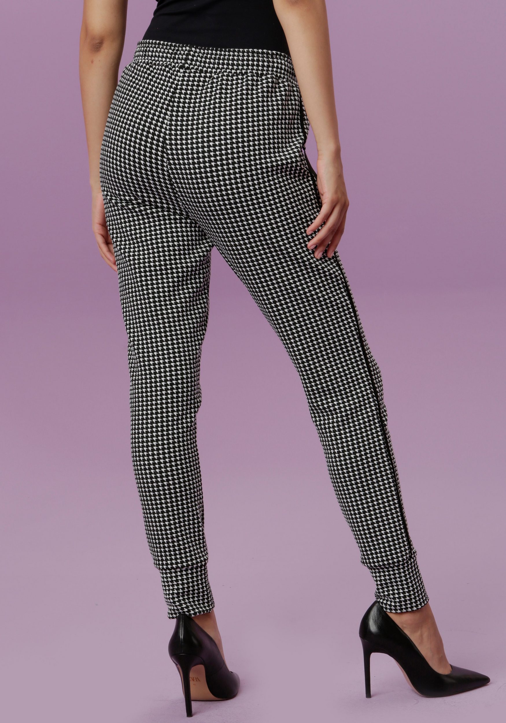- Figure-hugging women’s trousers made of elastic jacquard fabric