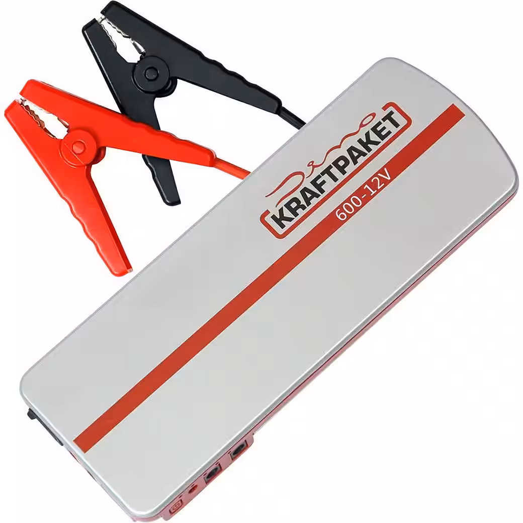 | Characteristics | Rechargeable via: 230 V (via power adapter), incl. batteries: 18 Ah · Power station features: 2x 12 V output, 2x USB socket, reverse polarity and electronic protection, SOS signal light, charge level indicator, electronic protection, work light, metal clamps · Weight: 600 g · Capacity (mAh, Ah): 18 Ah · Product dimensions, width: 87 mm · Product dimensions, height: 27 mm · Product dimensions, length: 230 mm · Peak current (12 V): 600 A · Jump-start current (12 V): 300 A · Built-in battery: LiPo · Further technical data: Maximum 20 jump-start attempts on a full charge |