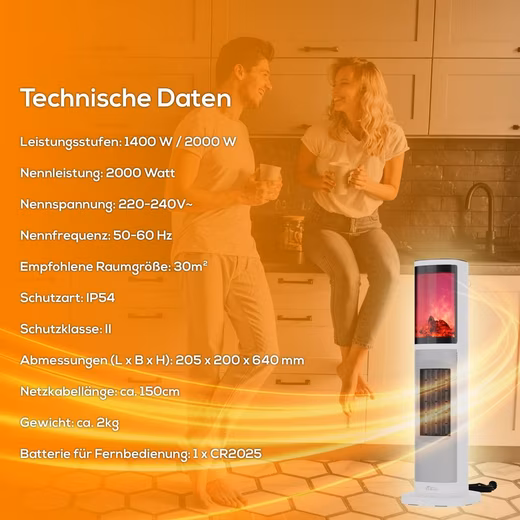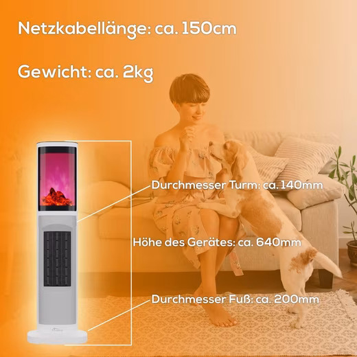 In the cold season, this tower heater with simulated flame effect is not only an eye-catcher, but also the perfect companion for warming up.