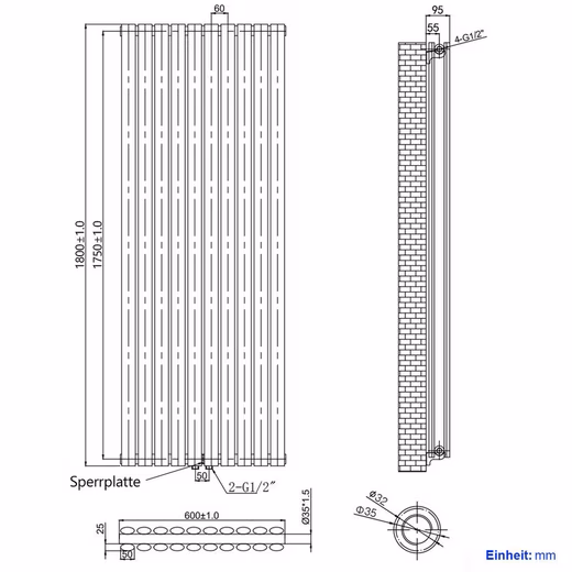 - Scope of delivery: tubular radiator, mounting set, German installation instructions. ATTENTION: Does not contain valves!