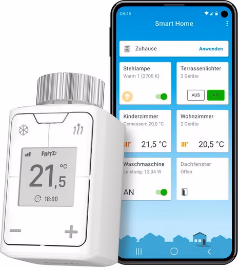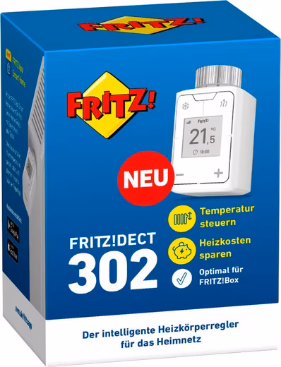 FRITZ! DECT 302 conveniently regulates the room temperature and helps to save energy. This also works via smartphone, tablet or notebook on the go. Operation is very convenient thanks to the sharp e-paper display and numerous functions such as antifreeze or boost for quick heating.