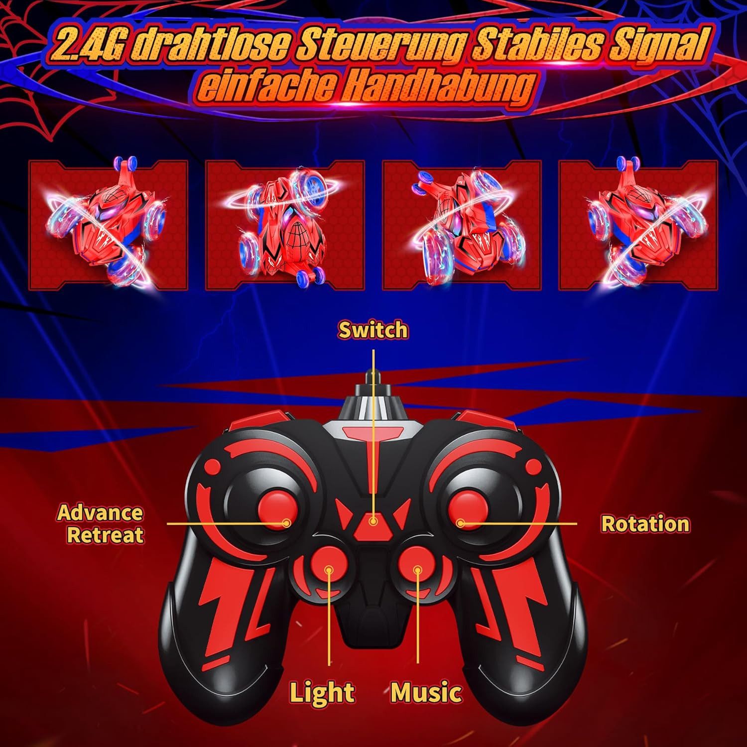360° Spin Spider RC Car: Experience spectacular 360° spins thanks to the innovative front axle and large wheels! The exciting spider design with cool LED lights fascinates children aged 3 and up.