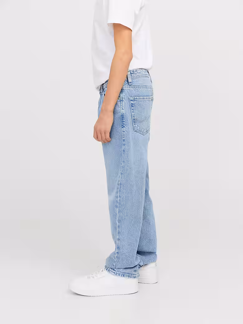 The relaxation fit jeans »JJICHRIS fit comfortably and are ideal for everyday life« from Jack & Jones Junior offers many possible combinations for different looks. The wide leg shape of the boys’ jeans leaves a lot of freedom of movement and the high waist height sits comfortably above the waist and goes well with teens that would like to appear larger.
