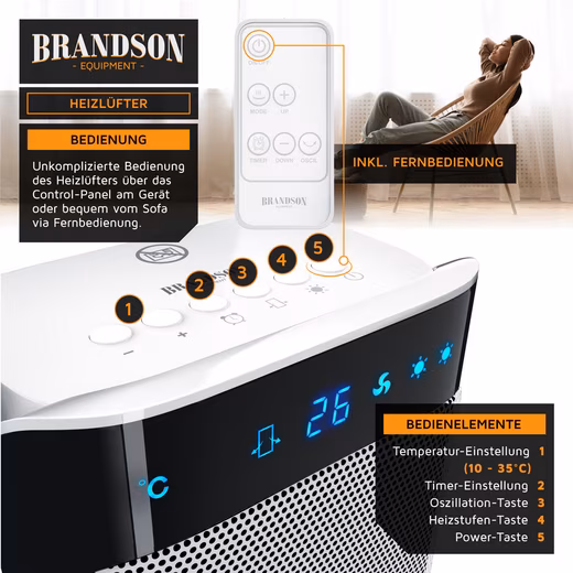 Safe, quiet and efficient heating with the Brandson ceramic fan heater