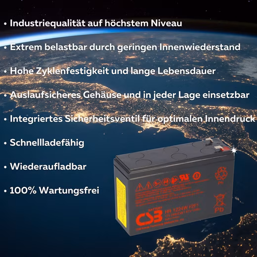 High-quality, maintenance-free brand battery for power supply in industry, for emergency power systems (UPS systems) as well as in the safety and security industries. Alarm technology.