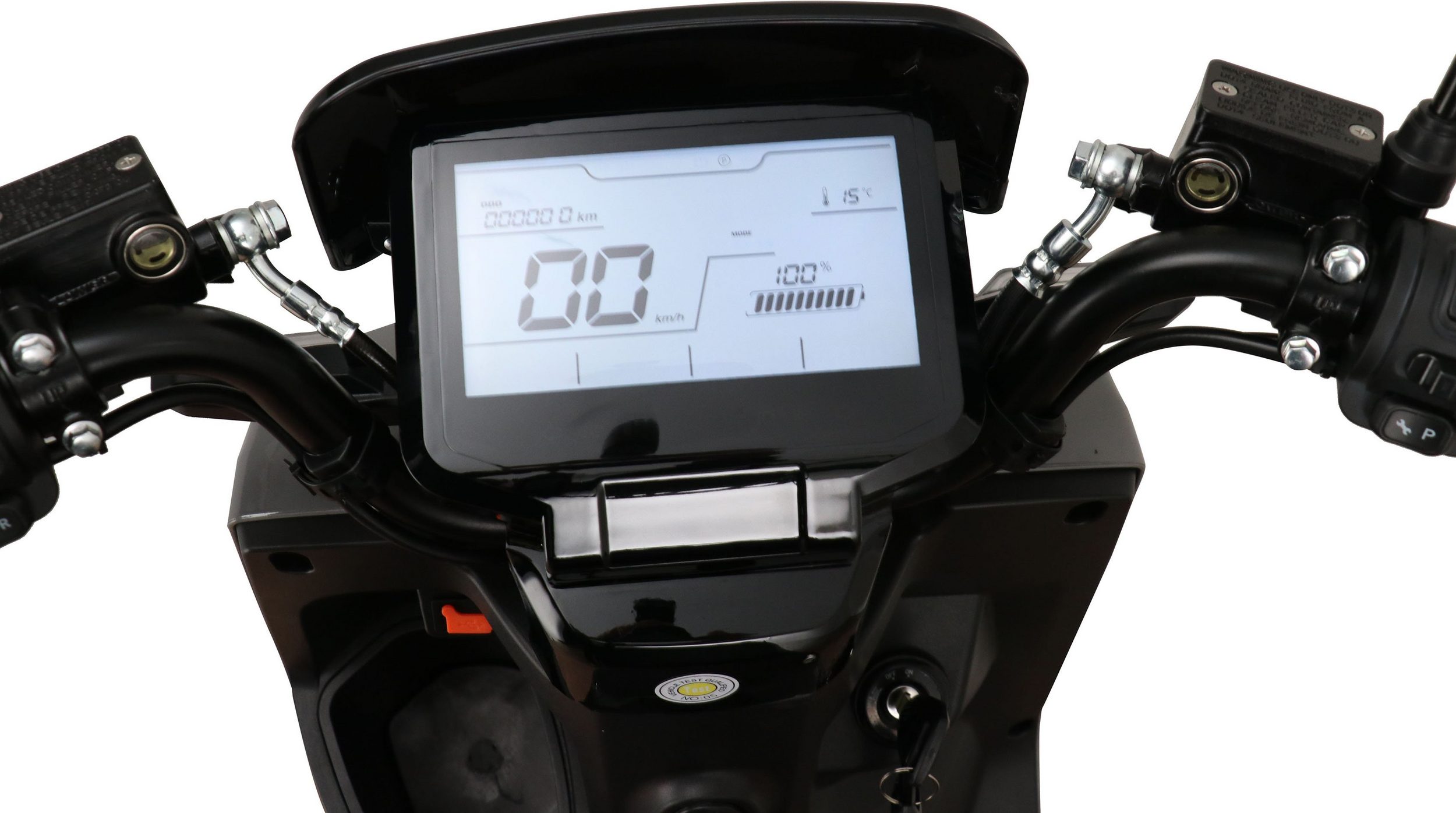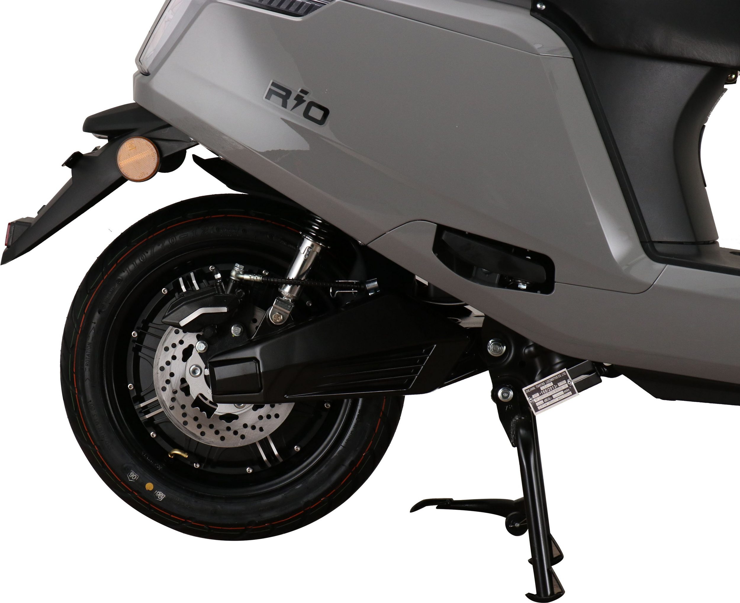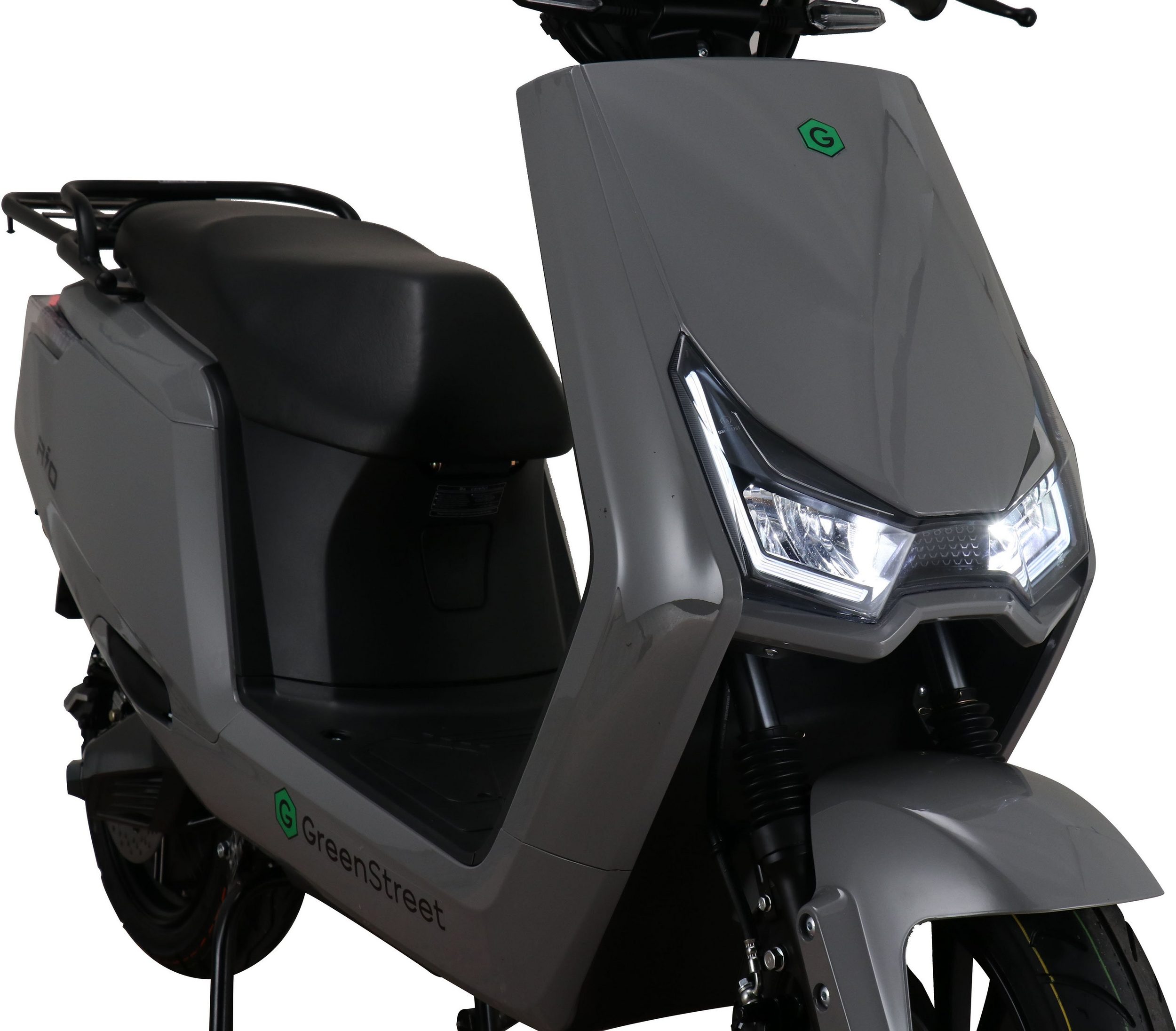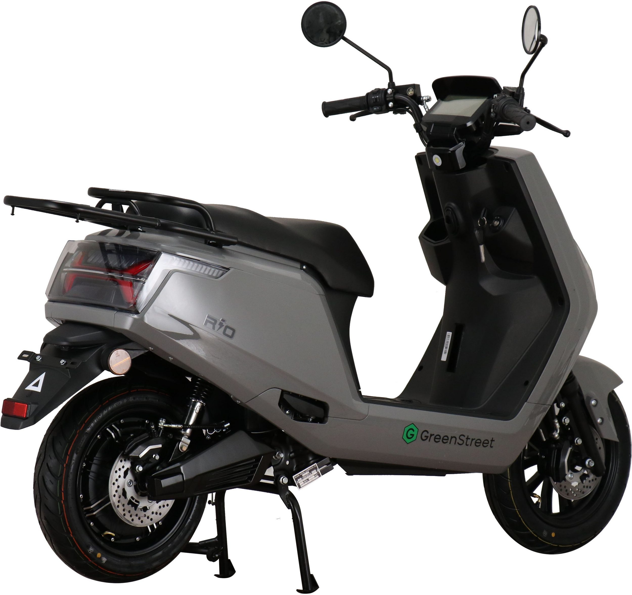 The GreenStreet Rio electric scooter embodies modern design. Its 2000-watt Bosch brushless hub motor effortlessly accelerates the scooter to a top speed of 25 km/h. The powerful lithium-ion battery provides a range of approximately 100 km. The actual range depends on the load, usage, terrain, tire pressure, and temperature. The lithium-ion battery is easily removable and can be charged using the included charger at any standard 230-volt household outlet. A full charge takes 5-6 hours. The e-scooter also features a comfortable 12-inch chassis, fully hydraulic disc brakes front and rear, and an LED lighting system. A steering lock and lockable battery compartment ensure the necessary security for everyday use. Low running costs further enhance the enjoyment of riding the Rio electric scooter.