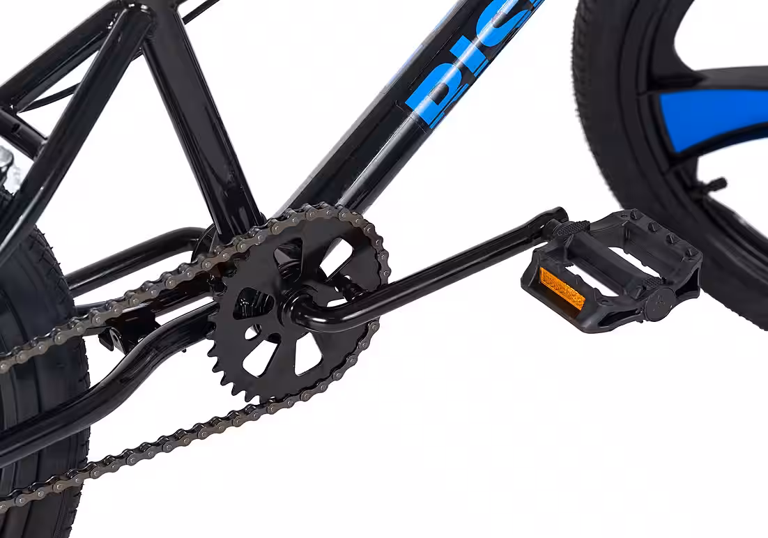 The rising star of the BMX world: the KS Cycling Freestyle BMX “RISE”! This BMX bike turns heads with its awesome freestyle look and black and blue MAG WHEELS. Equipped with a 360° rotor and four included pegs, the “RISE” is a stylish companion for all BMX fans! This BMX is recommended for riders between 125 and 200 cm tall.