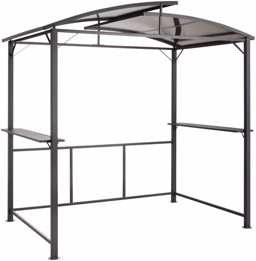 The high-quality “Roma” grill pavilion from KONIFERA offers practical protection from sun, light rain, and snow. Thanks to its timeless and elegant design, it blends effortlessly into any outdoor space. Equipped with a practical ventilation system, it prevents heat buildup under the roof. The roof is made of 6 mm thick polycarbonate twin-wall sheets. Two side shelves provide convenient storage for grilling supplies, drinks, and other items. The robust and stable steel frame ensures the pavilion’s sturdiness. Featuring a practical ventilation system to prevent heat buildup, the high-quality “Roma” grill pavilion from KONIFERA offers protection from rain and UV radiation.