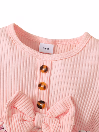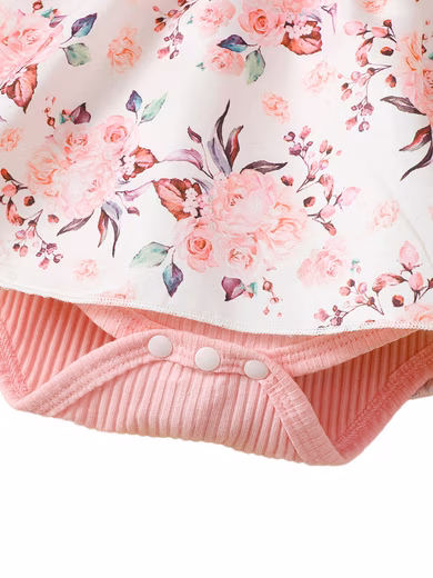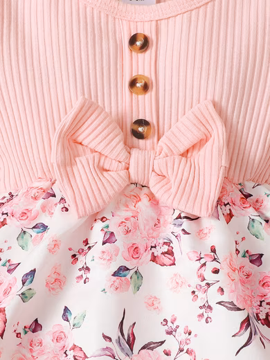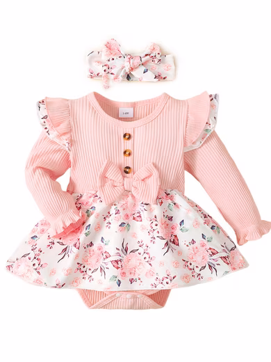 Cute Design:Â Baby jumpsuit for girls with long sleeves, round neck, headband, ruffled flying sleeves, A-line skirt with delicate floral print, decorative bow and single-breasted buttons in the front, patchwork design, which makes your baby cuter, healthier and more energetic.