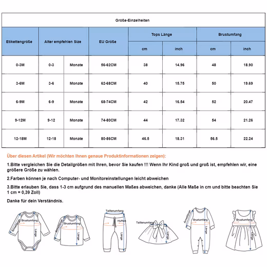 Sizes: 0-3 months/3-6 months/6-9 months/9-12 months/12-18 months
